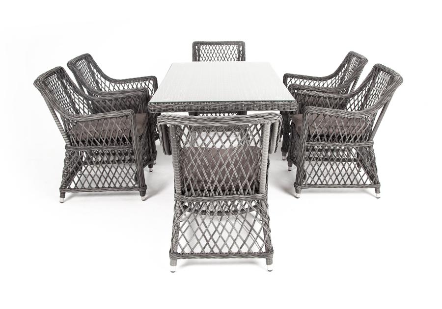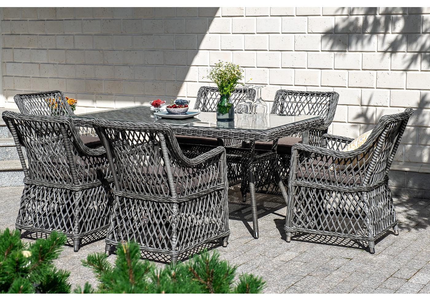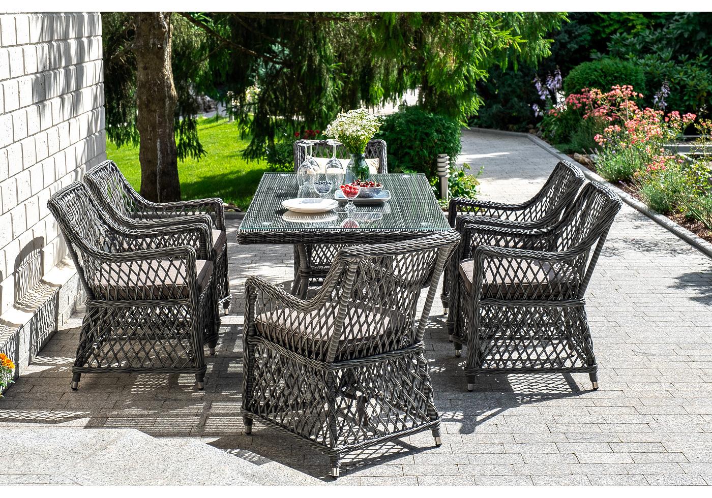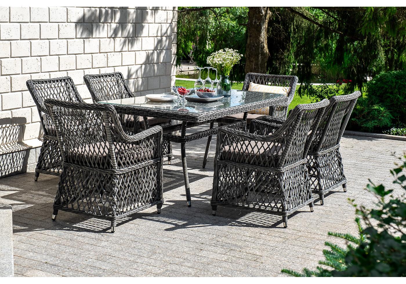 Высота спинки – 460 мм. "Латте" плетеный стол из искусственного ротанга 160х90см, цвет графит 1шт. 1 600Х900Х750, "Латте" плетеное кресло из искусственного ротанга, цвет графит 6шт. 550Х660Х850,