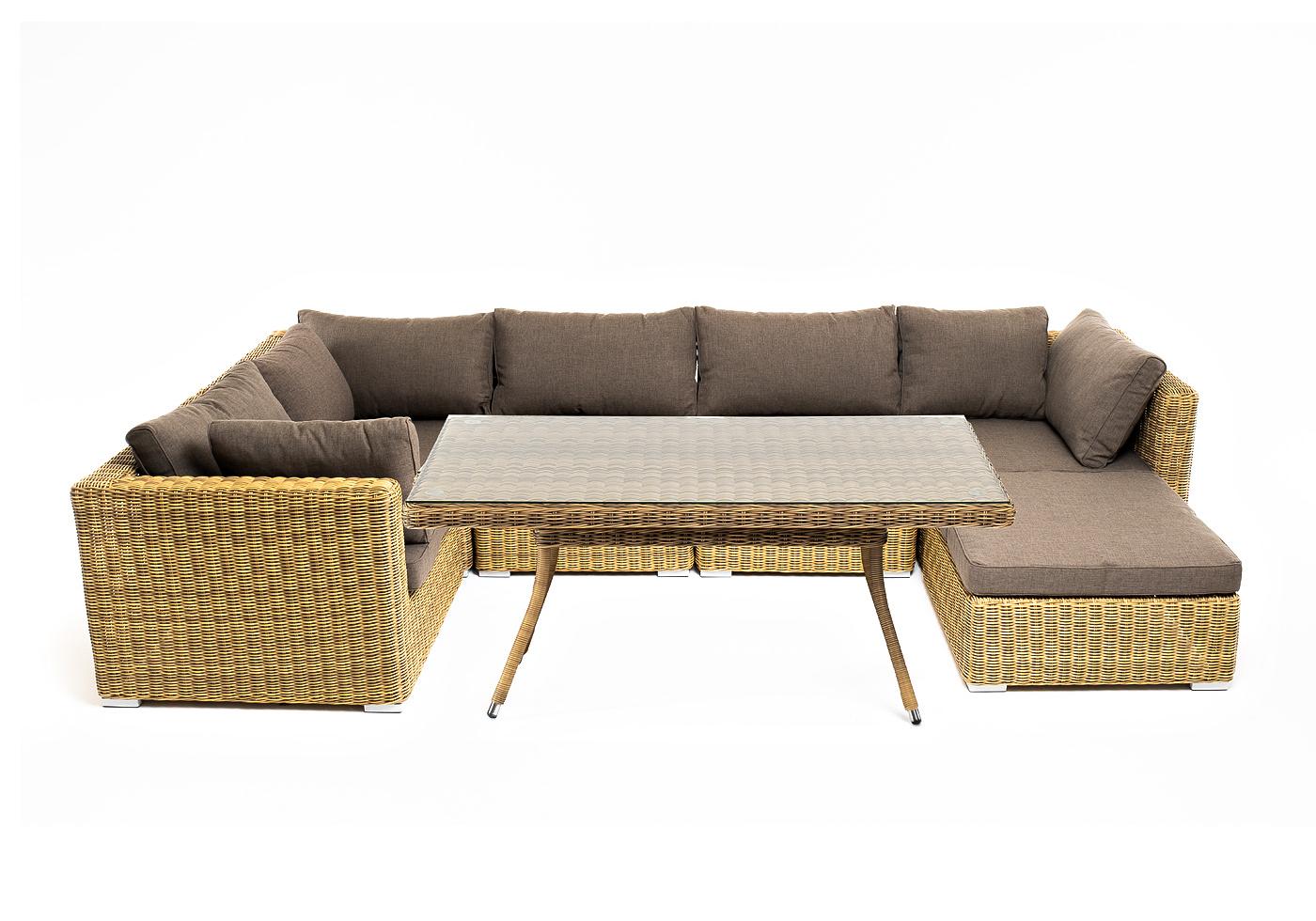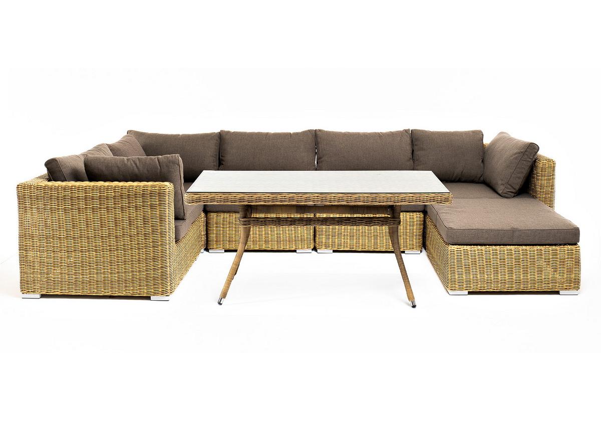 "Лунго" обеденная группа угловая из искусственного ротанга, цвет соломенный