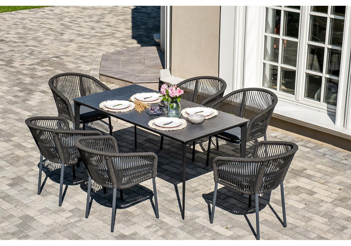 "Малага" обеденная группа на 6 персон со стульями "Марсель", каркас темно-серый, роуп темно-серый