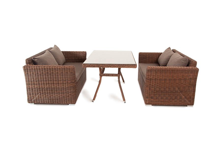 Обеденная группа комфорт-класса из синтетического ротанга «Мокко». В комплекте: 2 двухместных дивана «Капучино» - 1700×865×815 мм и обеденный стол на четверых «Латте» - 1600×900×750 мм.
