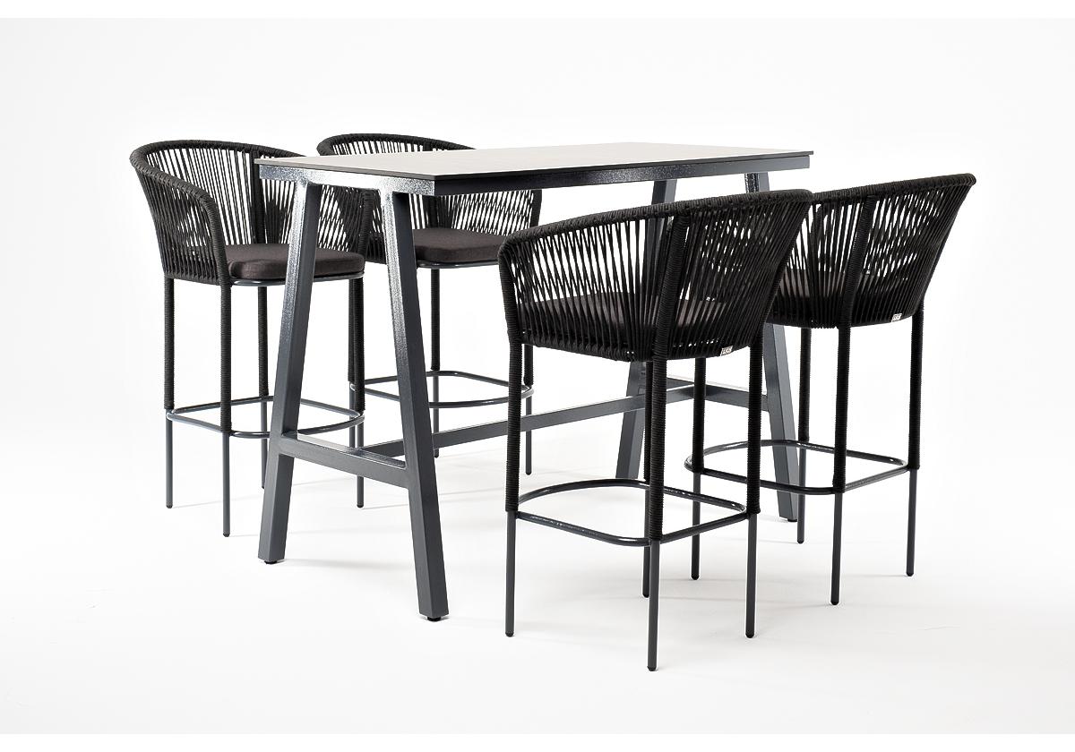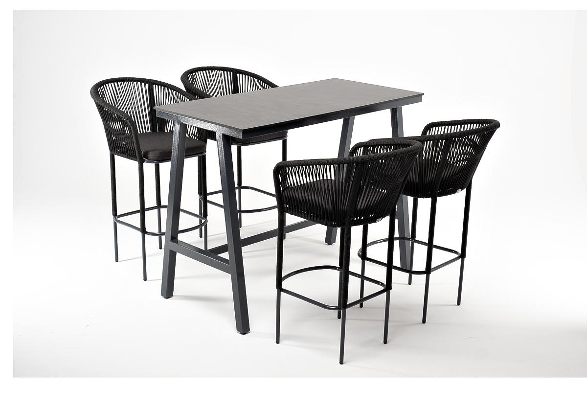 - 4 плетеных барных стульев «Марсель» из роупа, размером - 590×690×1100 мм, цвет роупа - темно-серый, каркас из стали, окрашен порошковой краской в серый оттенок. "Рио" стол барный из HPL 140х70см, H110, цвет столешницы "серый гранит" 1шт. 1 400Х700Х1 100, "Марсель" стул барный плетеный из роупа, каркас из стали темно-серый (RAL7024) муар, роуп темно-серый круглый, ткань темно-серая 027 NEW 4шт. 590Х705Х1 070,
