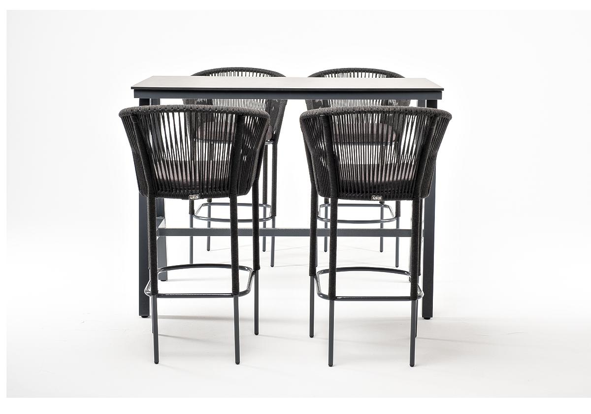 "Рио" барный комплект на 4 персоны, стол HPL "серый гранит", цвет темно-серый