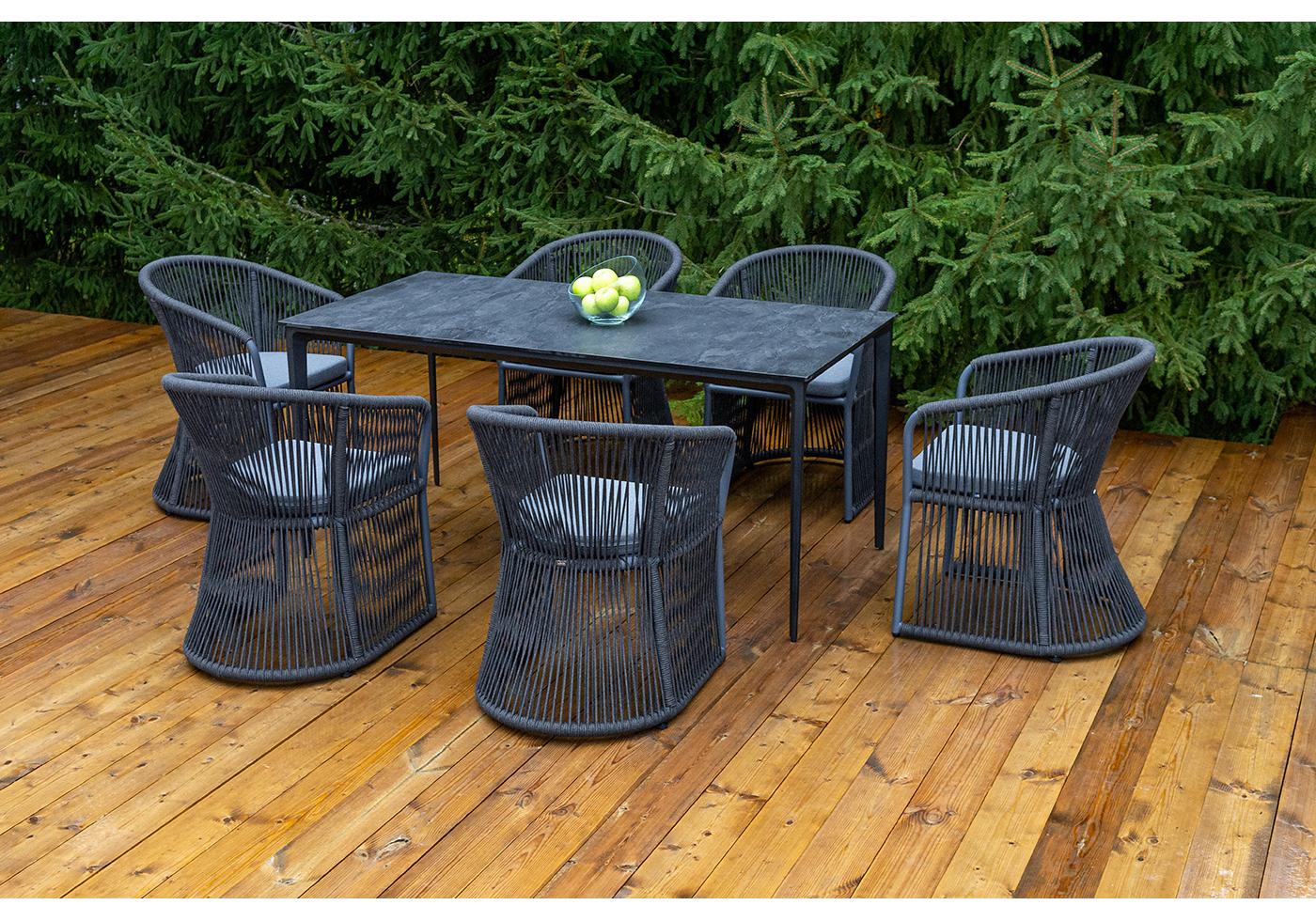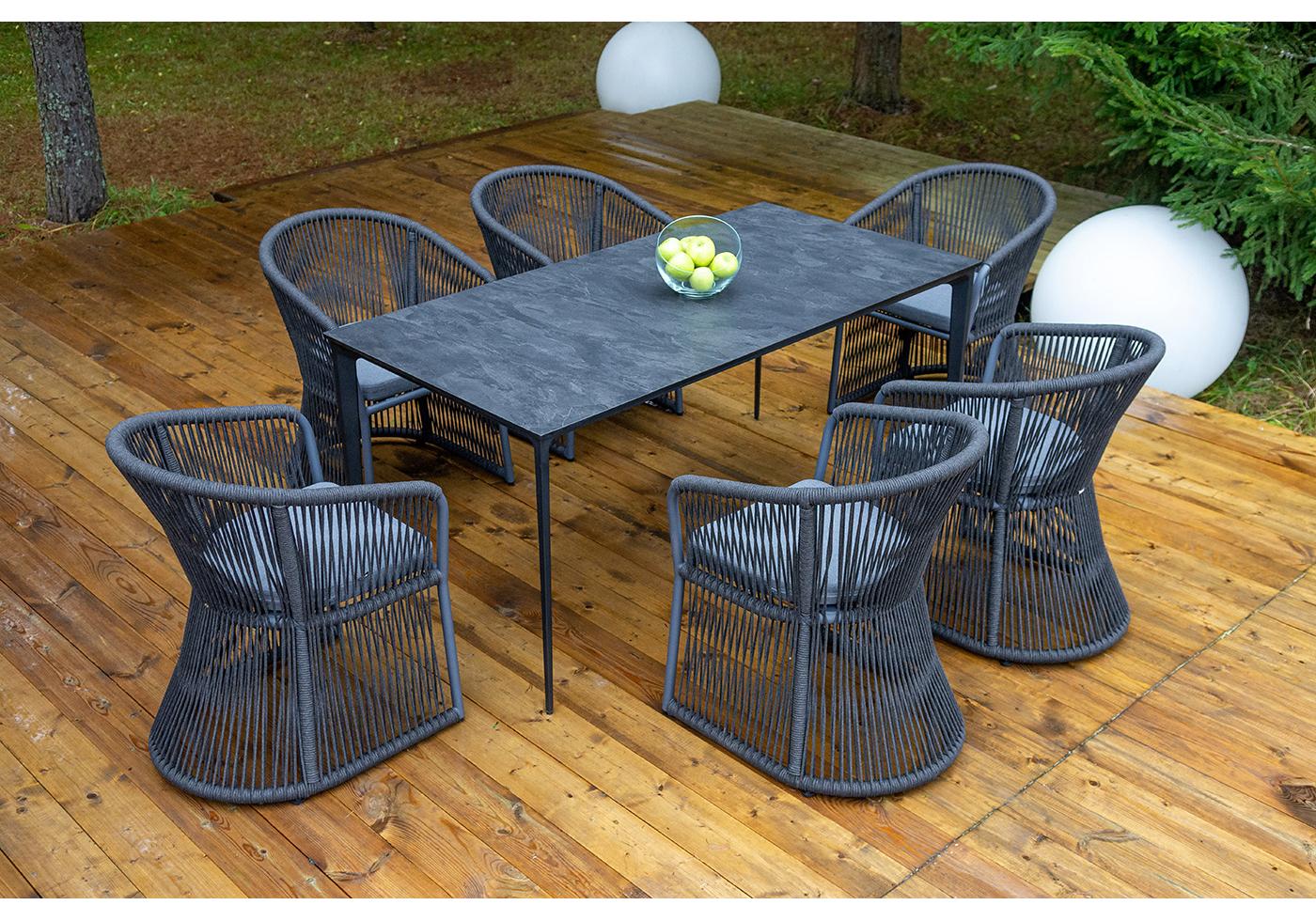 "Романо" обеденная группа на 6 персон, каркас темно-серый, роуп темно-серый