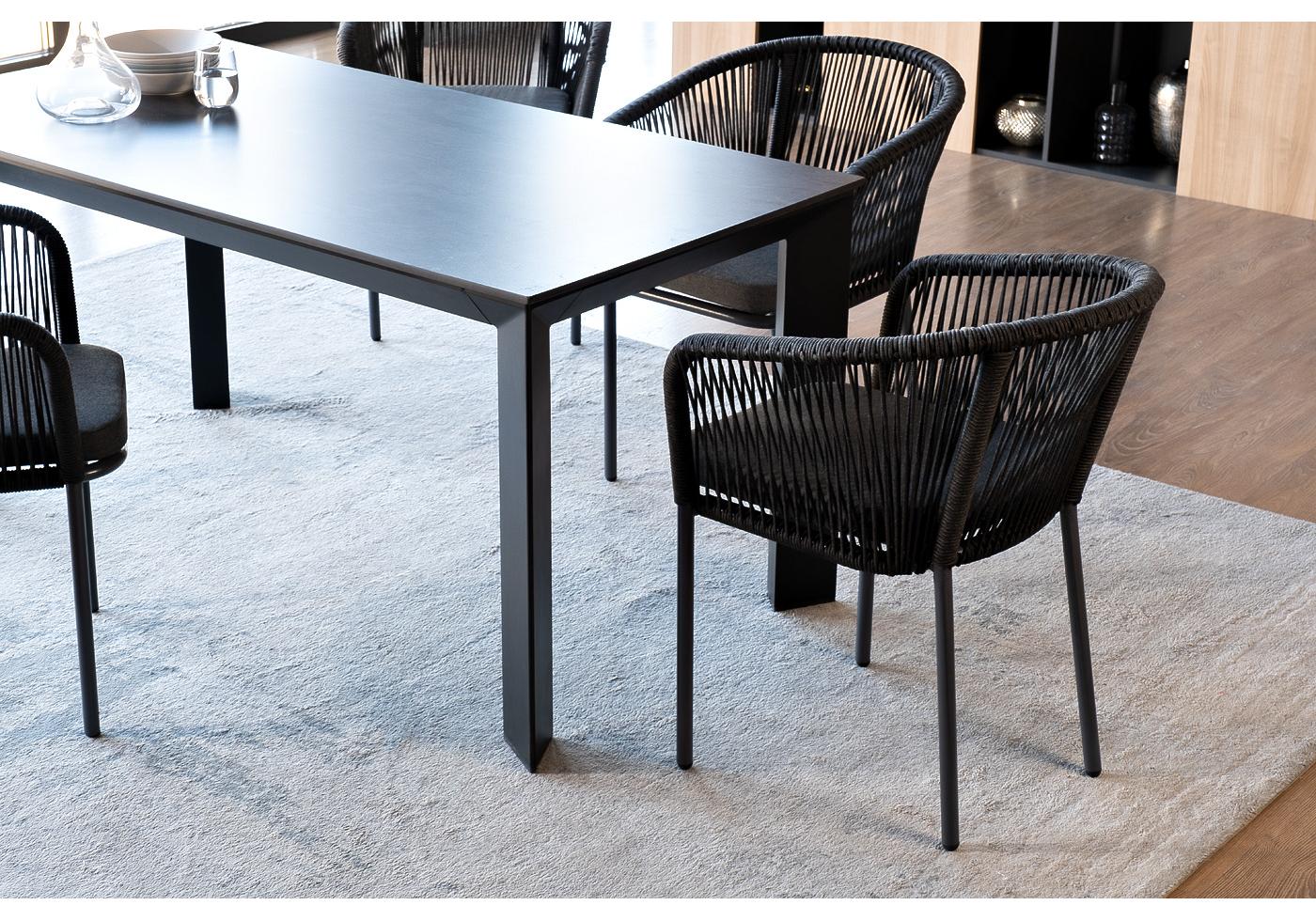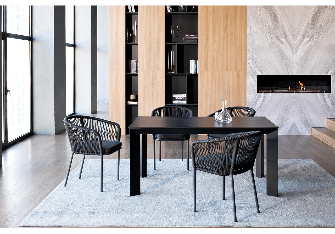 - 4 плетеных стульев «Марсель» из роупа, размером - 570×620×775 мм, цвет роупа - темно-серый, каркас из алюминия, окрашен порошковой краской в темно-серый оттенок. "Венето" обеденный стол из HPL 160х80см, цвет "серый гранит", каркас черный 1шт. 1 600Х800Х750, "Марсель" стул плетеный из роупа, каркас алюминий темно-серый (RAL7024) муар, роуп темно-серый круглый, ткань темно-серая 027 4шт. 570Х620Х775,