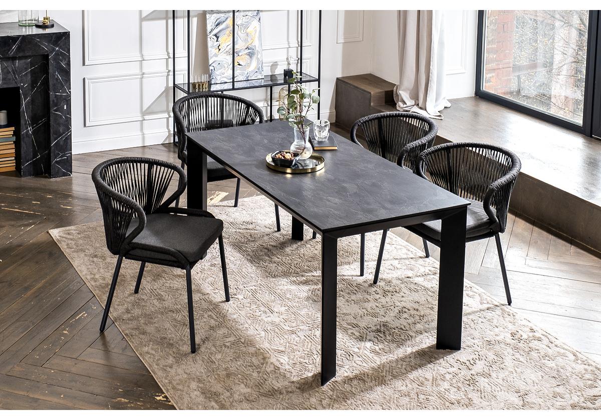 "Венето" обеденная группа на 4 персоны со стульями "Милан", каркас темно-серый, роуп темно-серый
