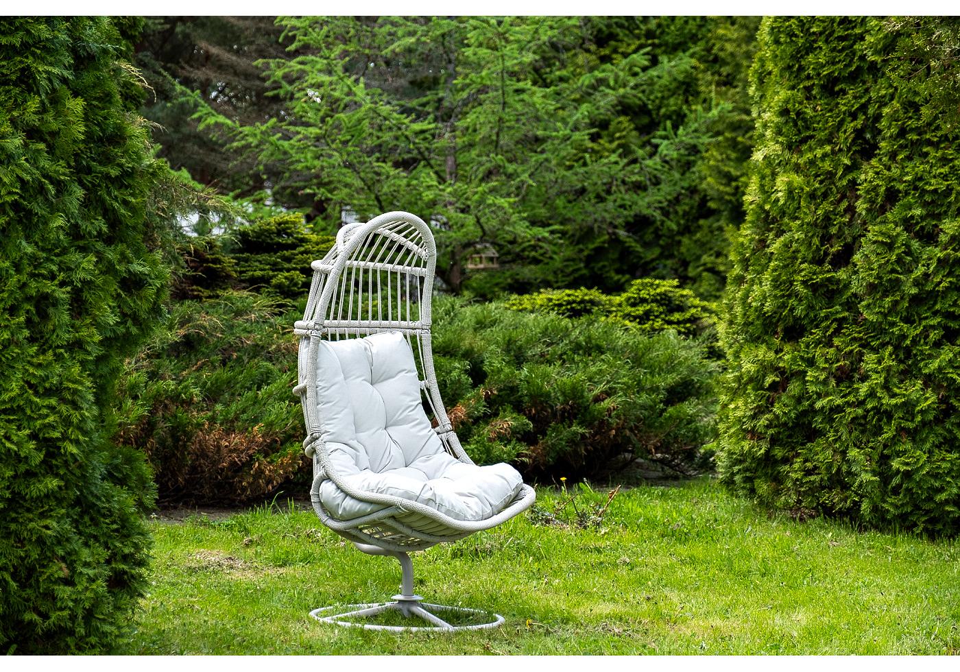 Для удобства сидения на кресле предусмотрена удлиненная подушка светло-серого цвета из полиэстера плотностью 270гр/м2 с влагоотталкивающей п