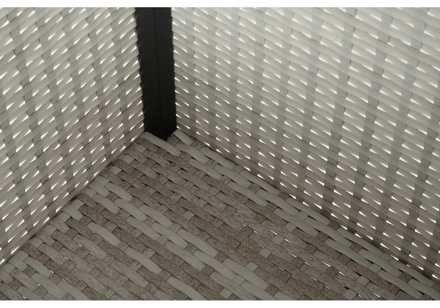 В основе алюниевый каркас, который вручную оплетен ротангом.