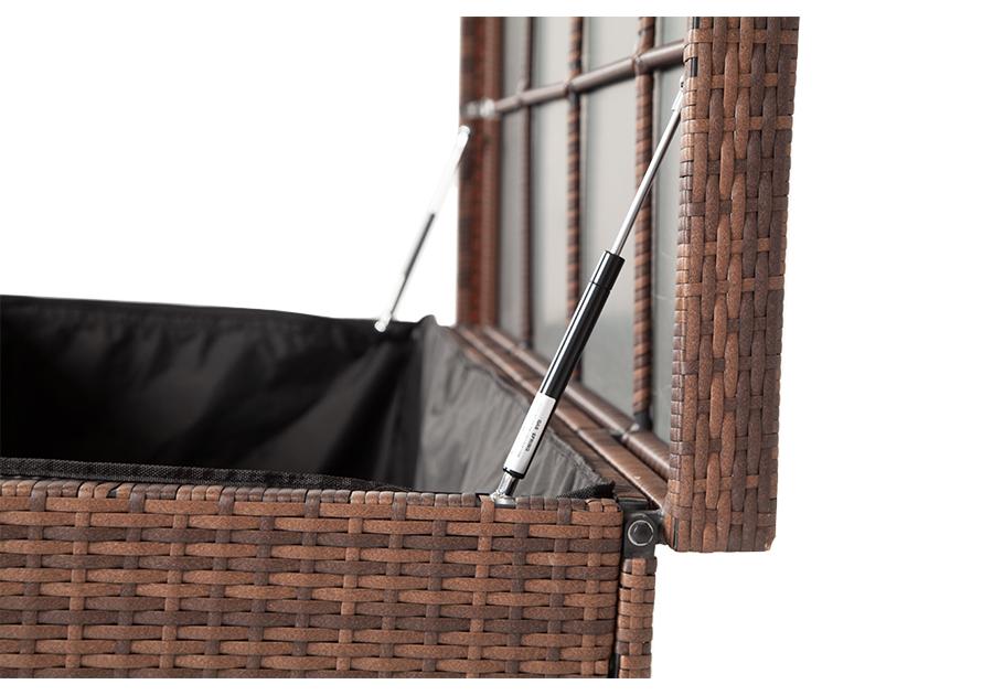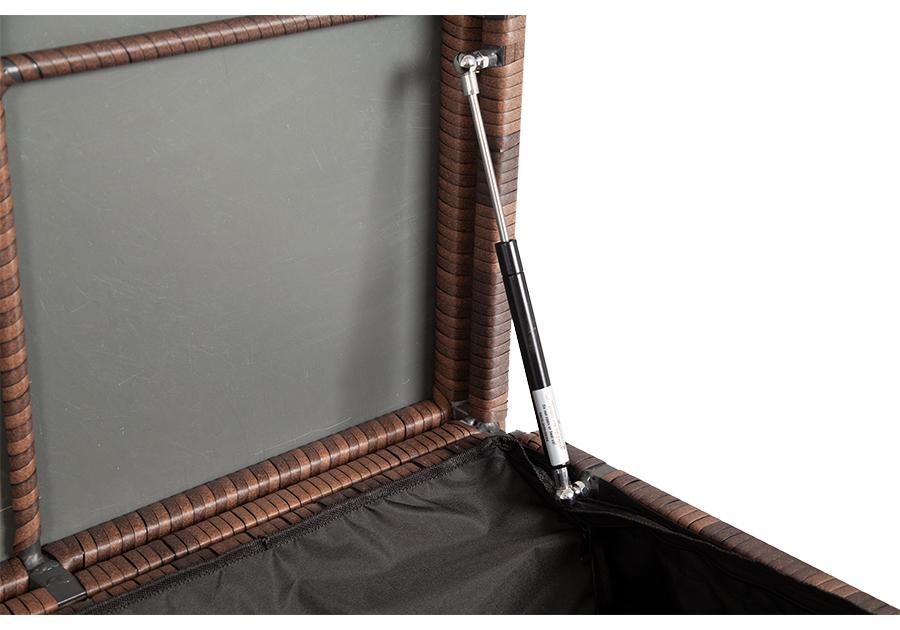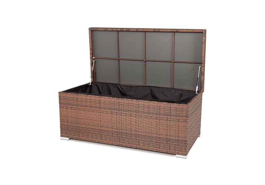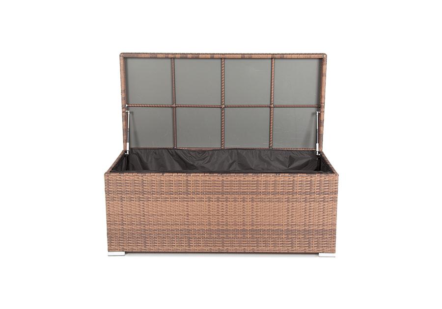 «Порту» вместительный сундук из плоского искусственного ротанга коричневого оттенка. В основе - алюминиевый каркас.