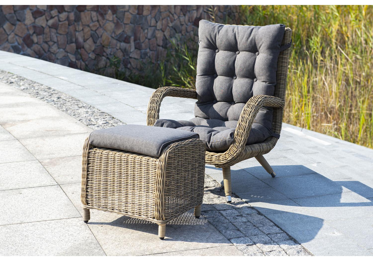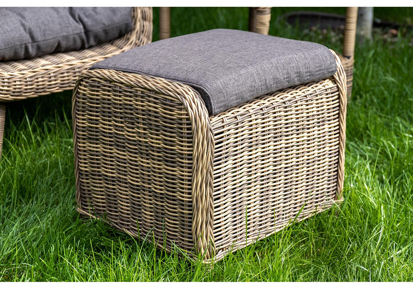 Пуф «Толедо» дополняет плетеные кресла и способен придать отдыху еще больший комфорт. Размер модели – 510×420×470 мм.