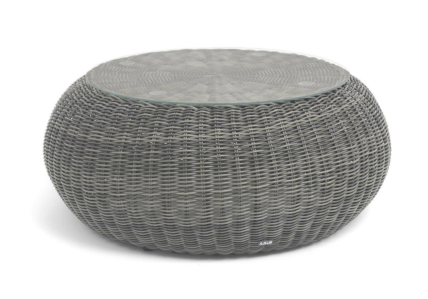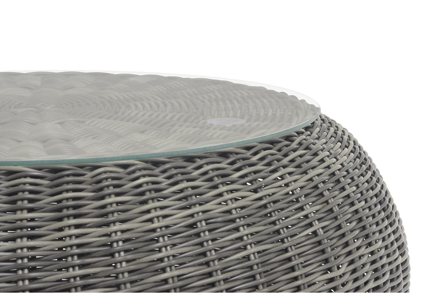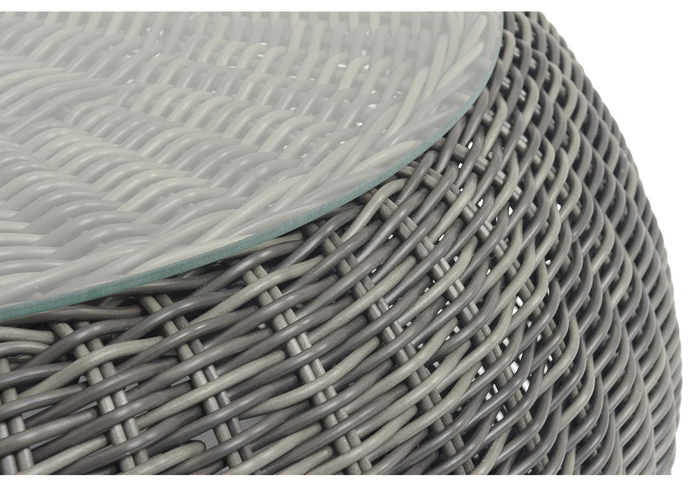 Плетеный столик представлен в графитовом цвете.