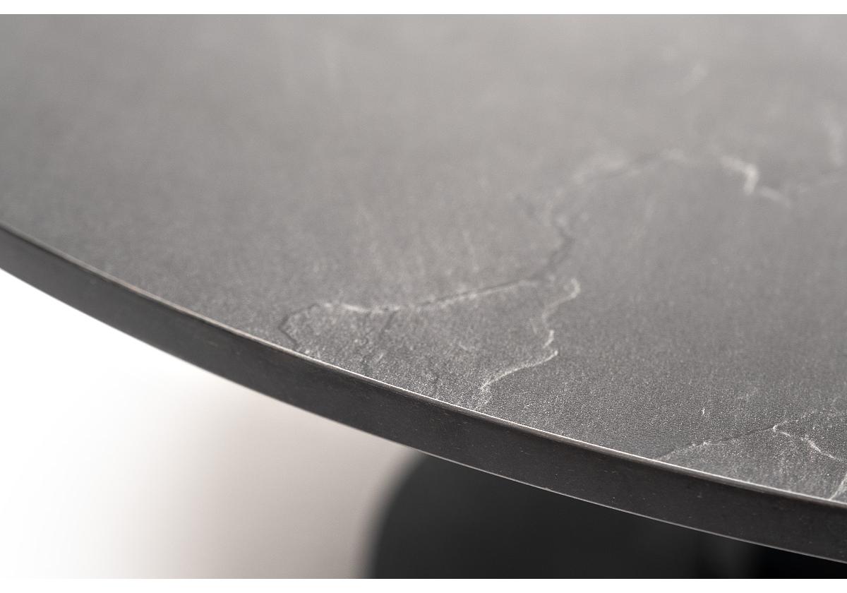 Столешница журнального столика выполнена из высококачественного монолитного компакт-пластика HPL, в цвете «серый гранит». Имеет диаметр - 80 см. Толщина HPL - 12 мм.