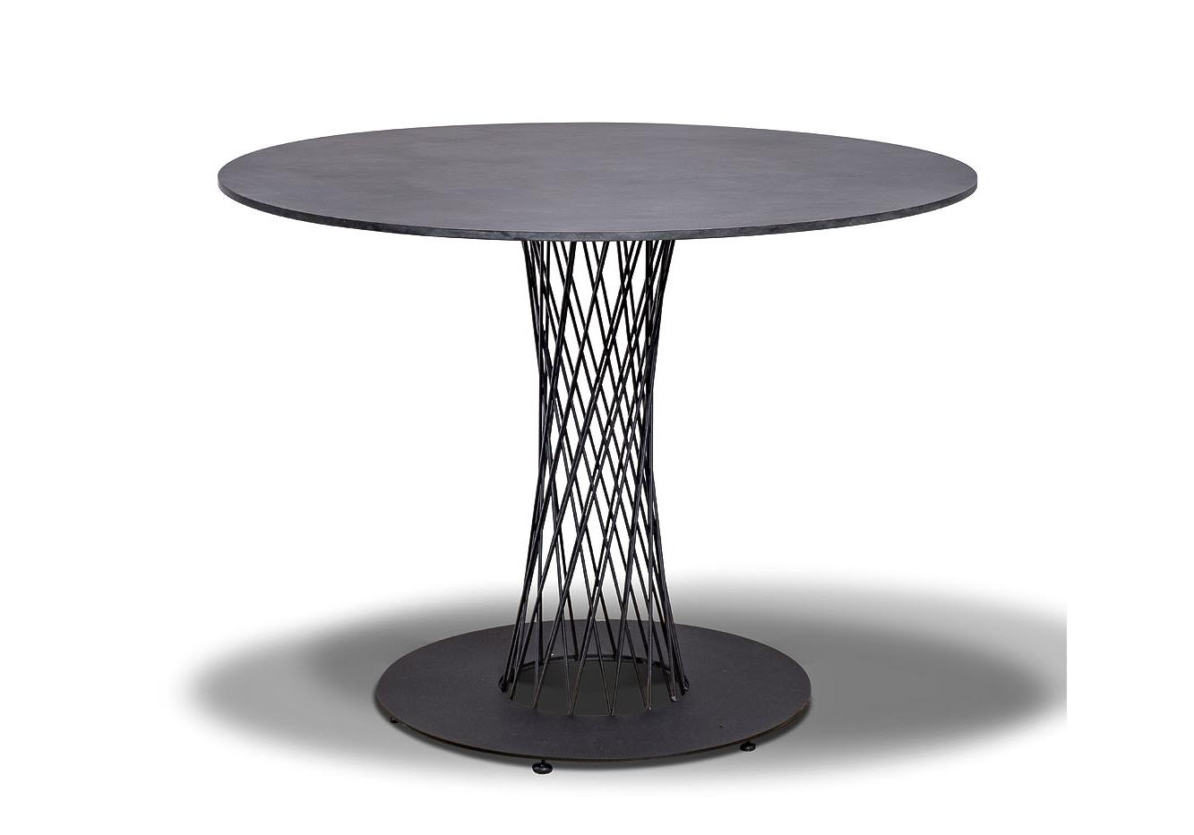 Обеденный стол «Диего» с изящной плетеной ножкой из прочного металла, окрашенного в черный цвет.
