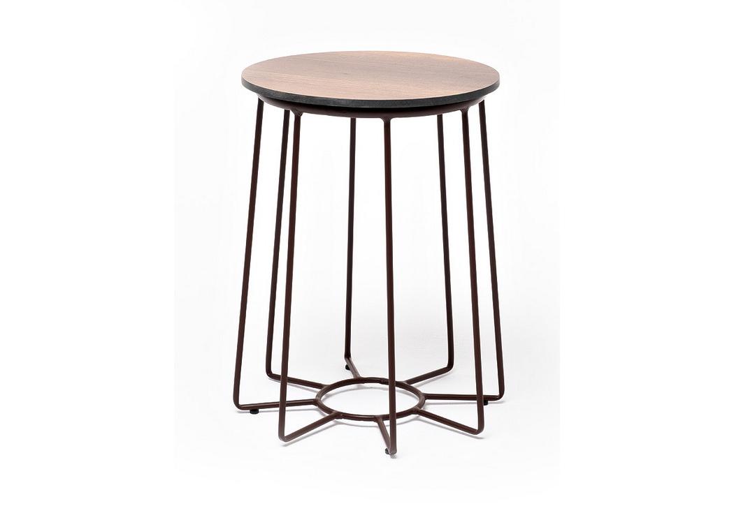 "Эквадор" журнальный стол из HPL круглый Ø40 H55, каркас из алюминия коричневый (RAL 8016) муар, цвет столешницы "дуб"