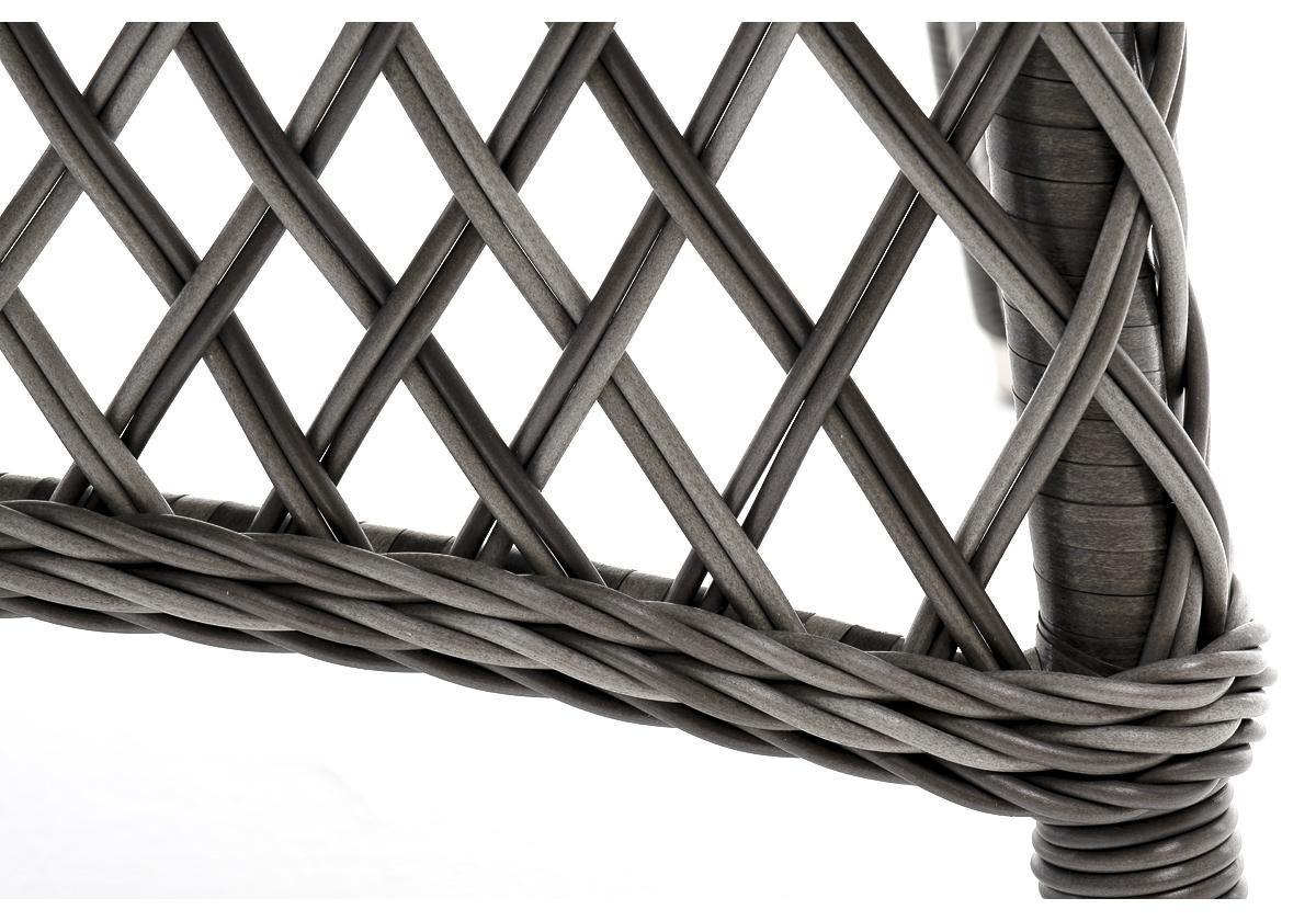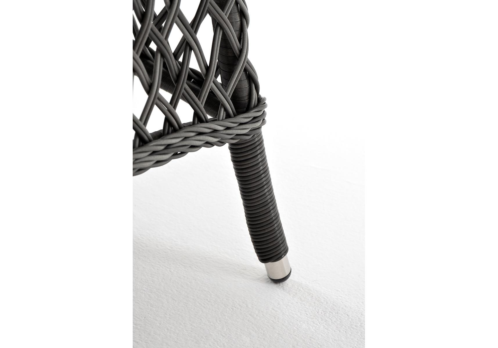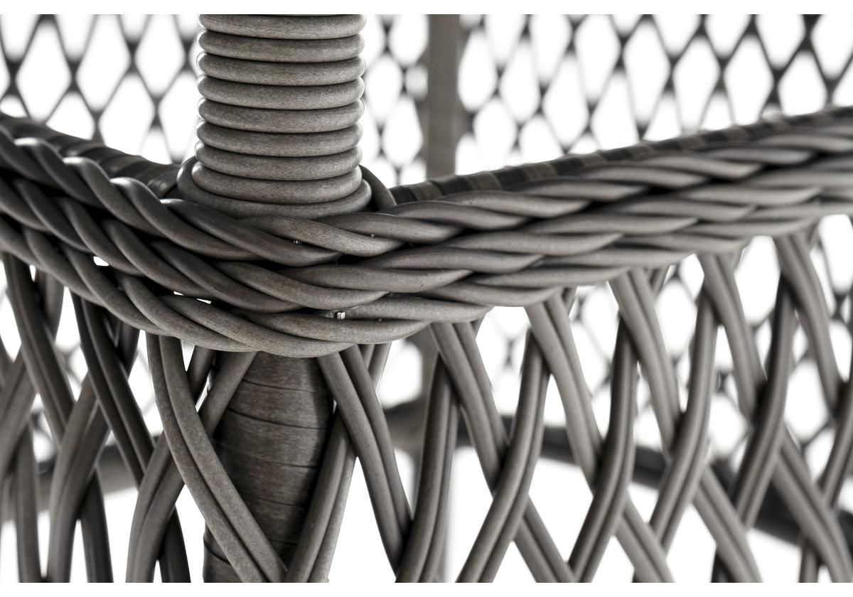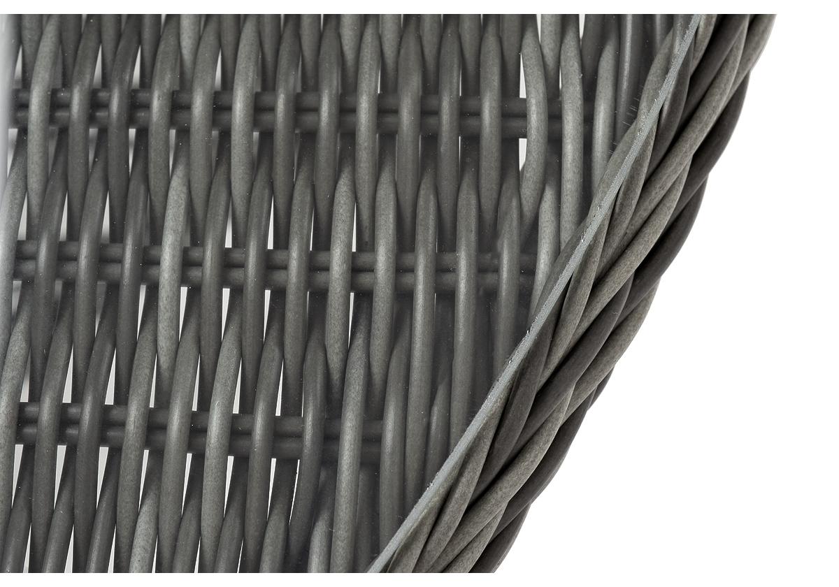 Каркас изготовлен из прочного и очень легкого алюминия. Вручную оплетен синтетическим ротангом натурального графитового оттенка.