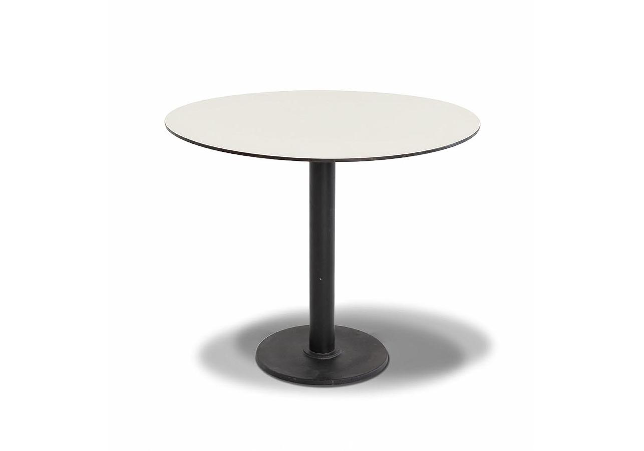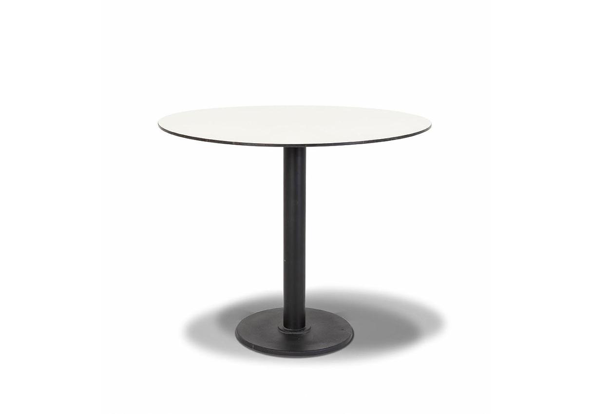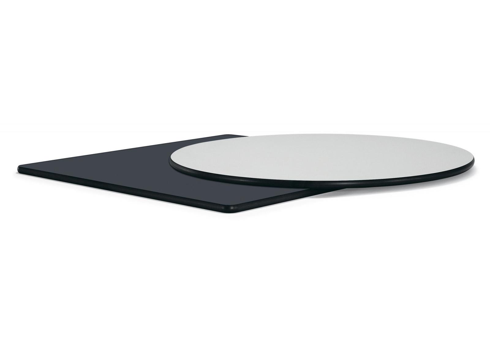 Круглый стол «Каффе» со столешницей из HPL молочного цвета. Это высококачественный ударопрочный компакт-пластик, обладающий низкой пористостью, что предотвращает впитывание жидкостей, поэтому столы из HPL идеально подходит для обеденных зон. Толщина столешницы – 12 мм.