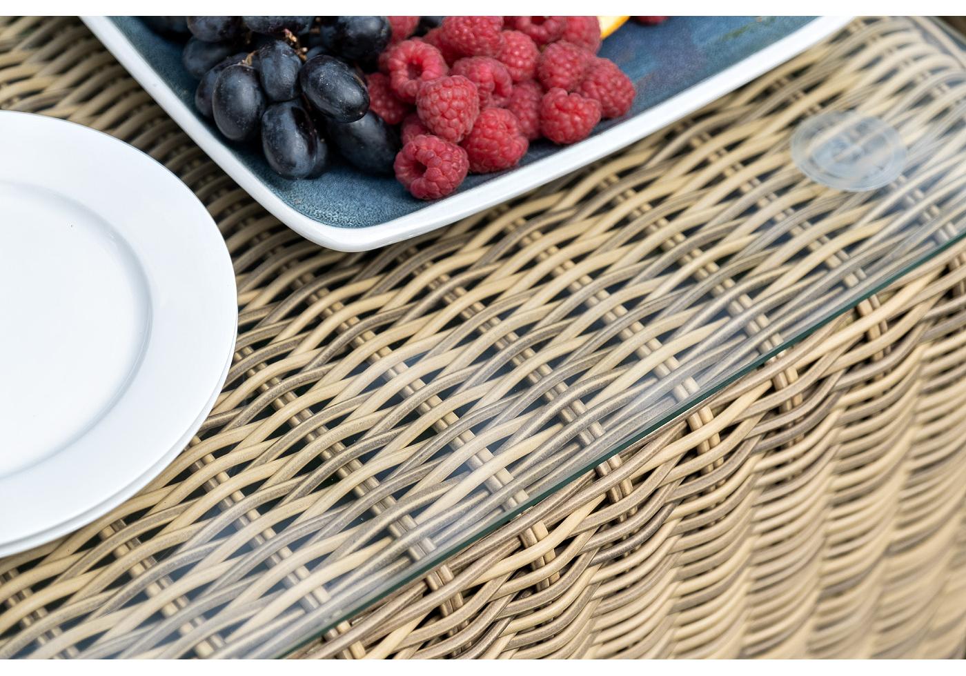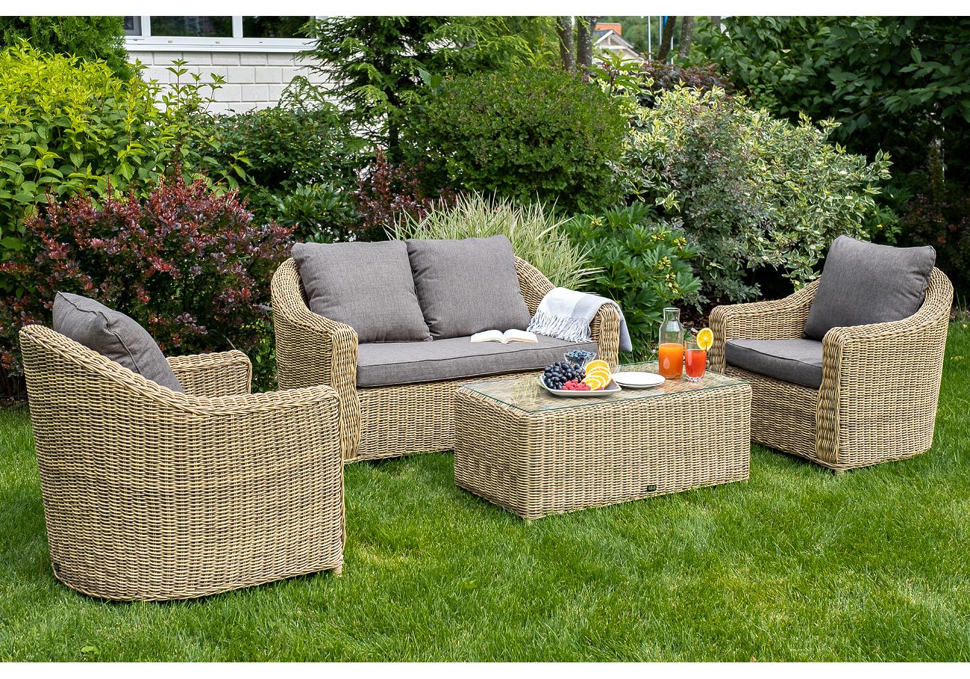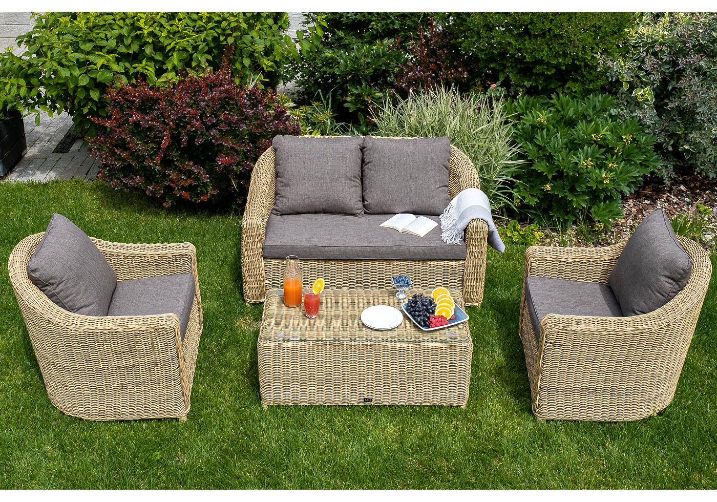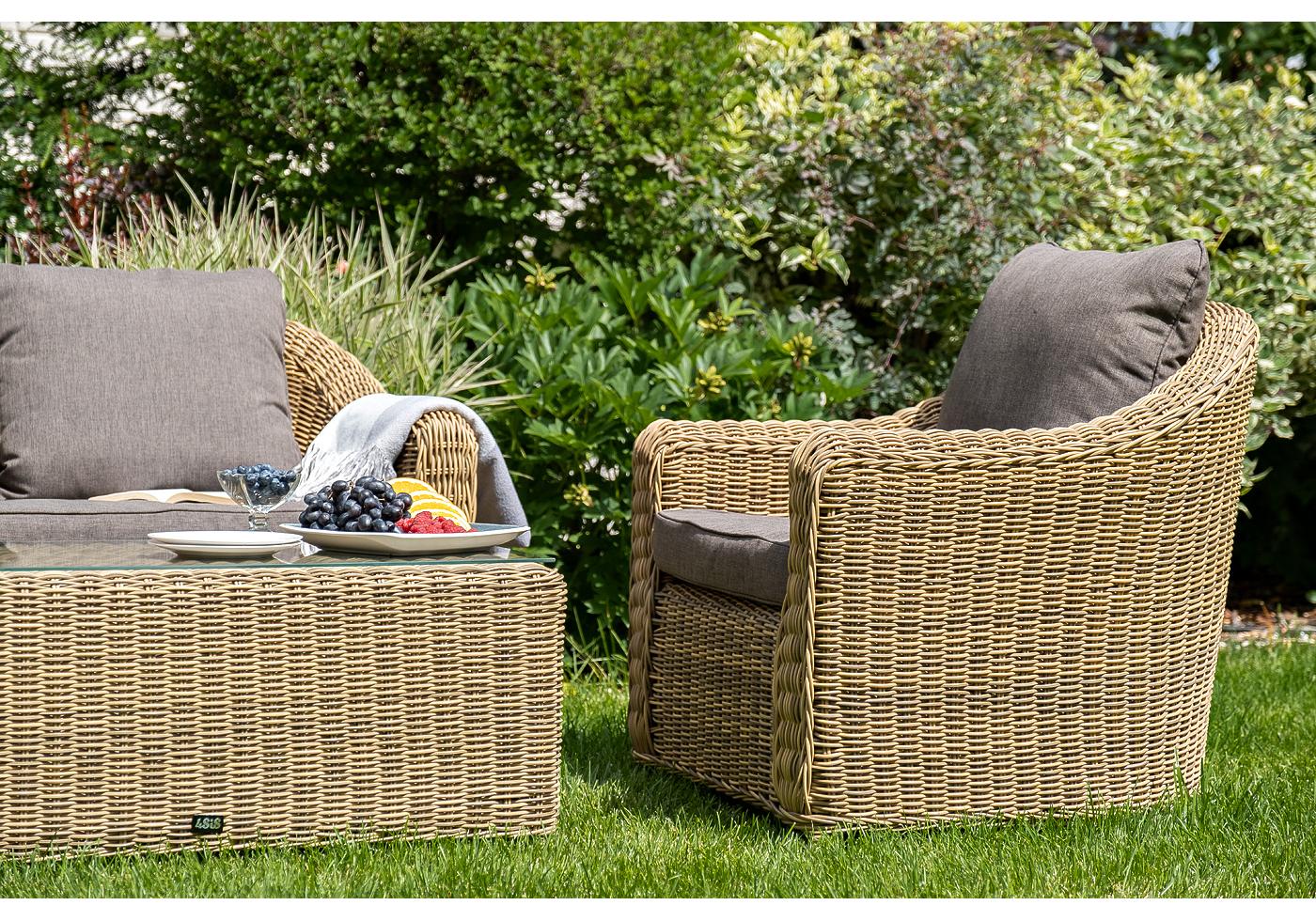 Журнальный столик из круглого искусственного ротанга «Кон Панна» соломенного цвета, подходит для эксплуатации при различных погодных условиях.