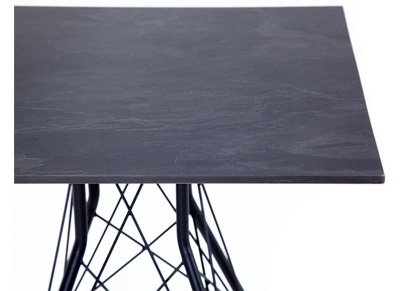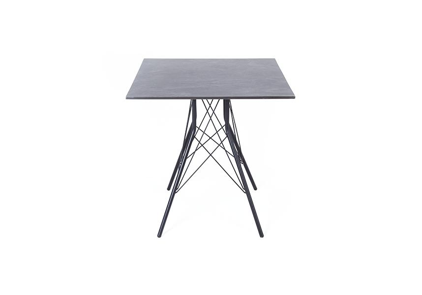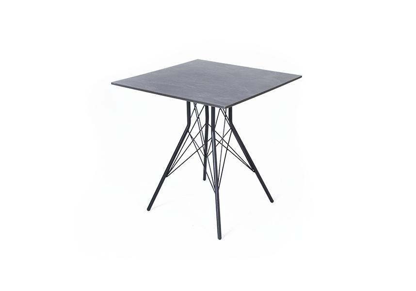 Каркас изготовлен из стали, окрашенной в матовый черный цвет. В качестве столешницы использован высококачественный монолитный компакт-пластика HPL, толщиной 12 мм. Цвет поверхности – «серый гранит».