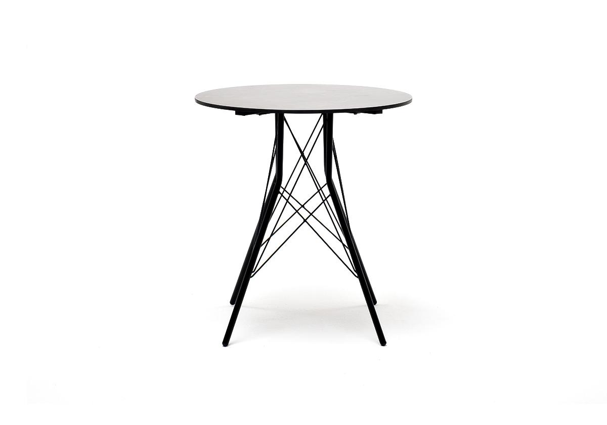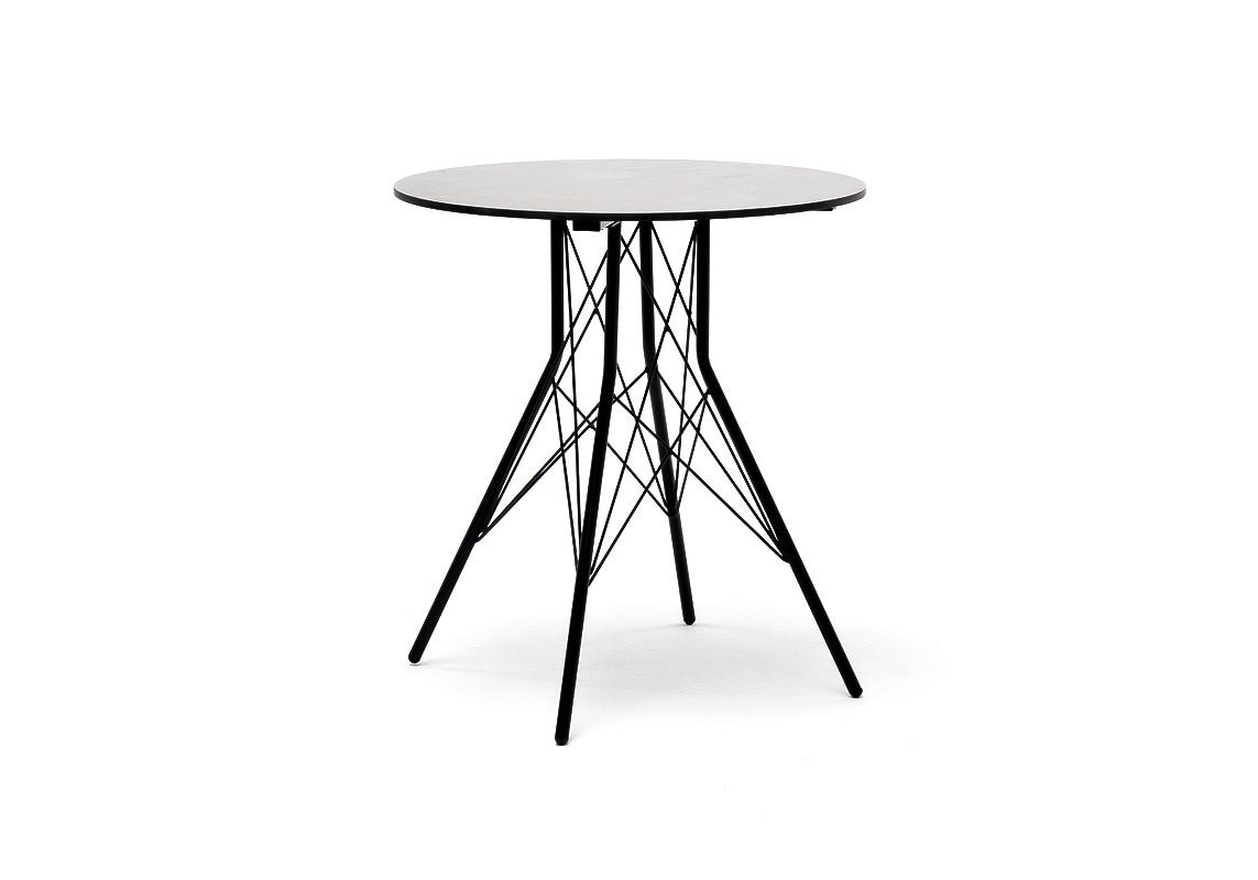 Каркас изготовлен из стали, окрашенной в матовый черный цвет. В качестве столешницы использован высококачественный монолитный компакт-пластика HPL, толщиной 12 мм. Цвет поверхности – «серый гранит».