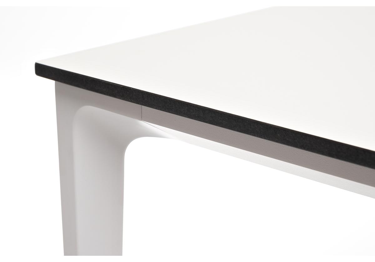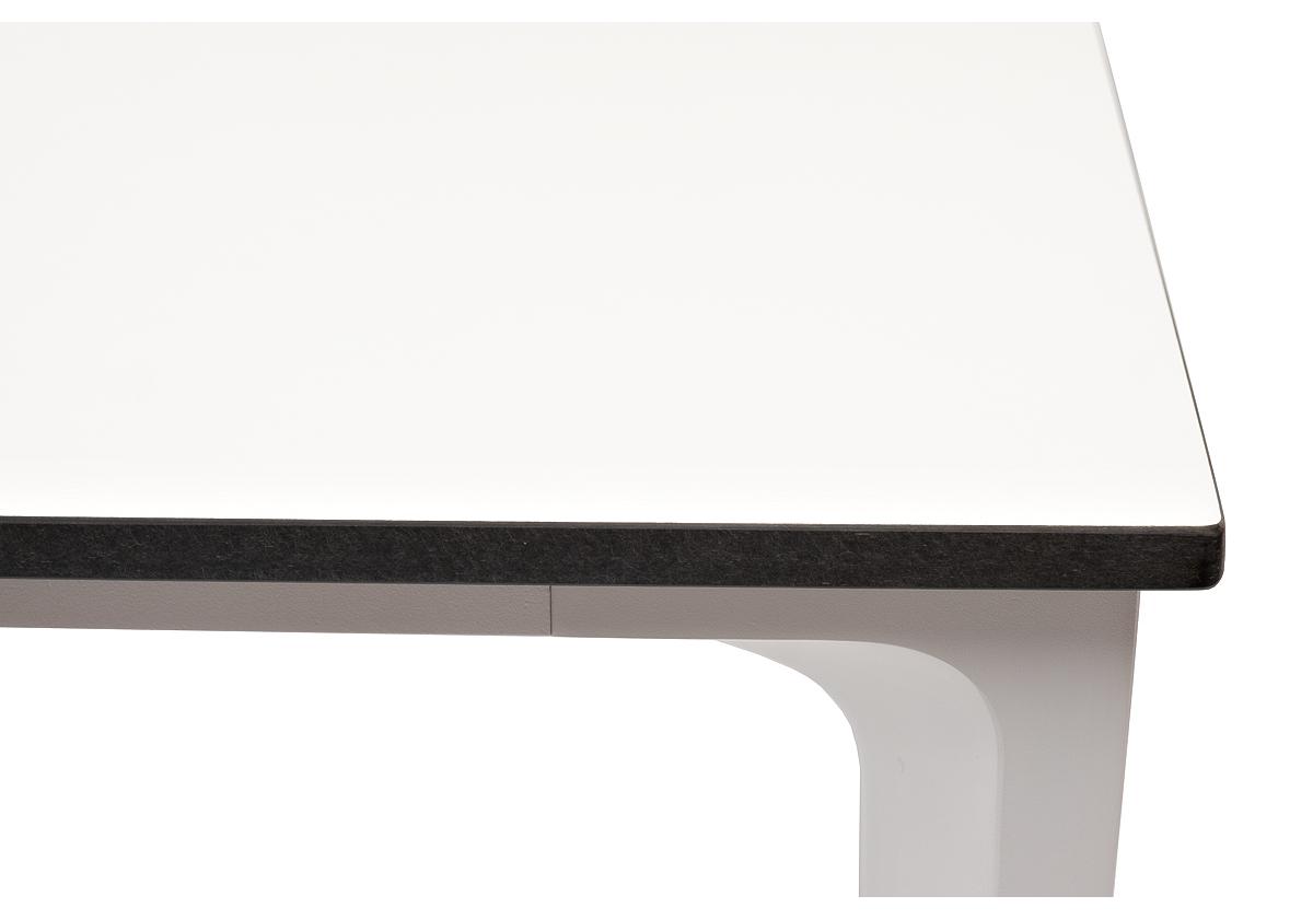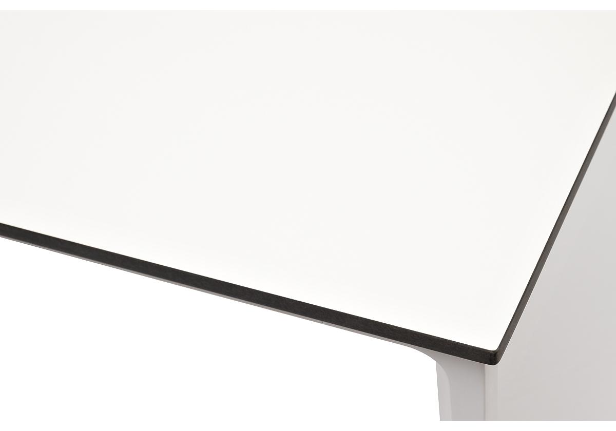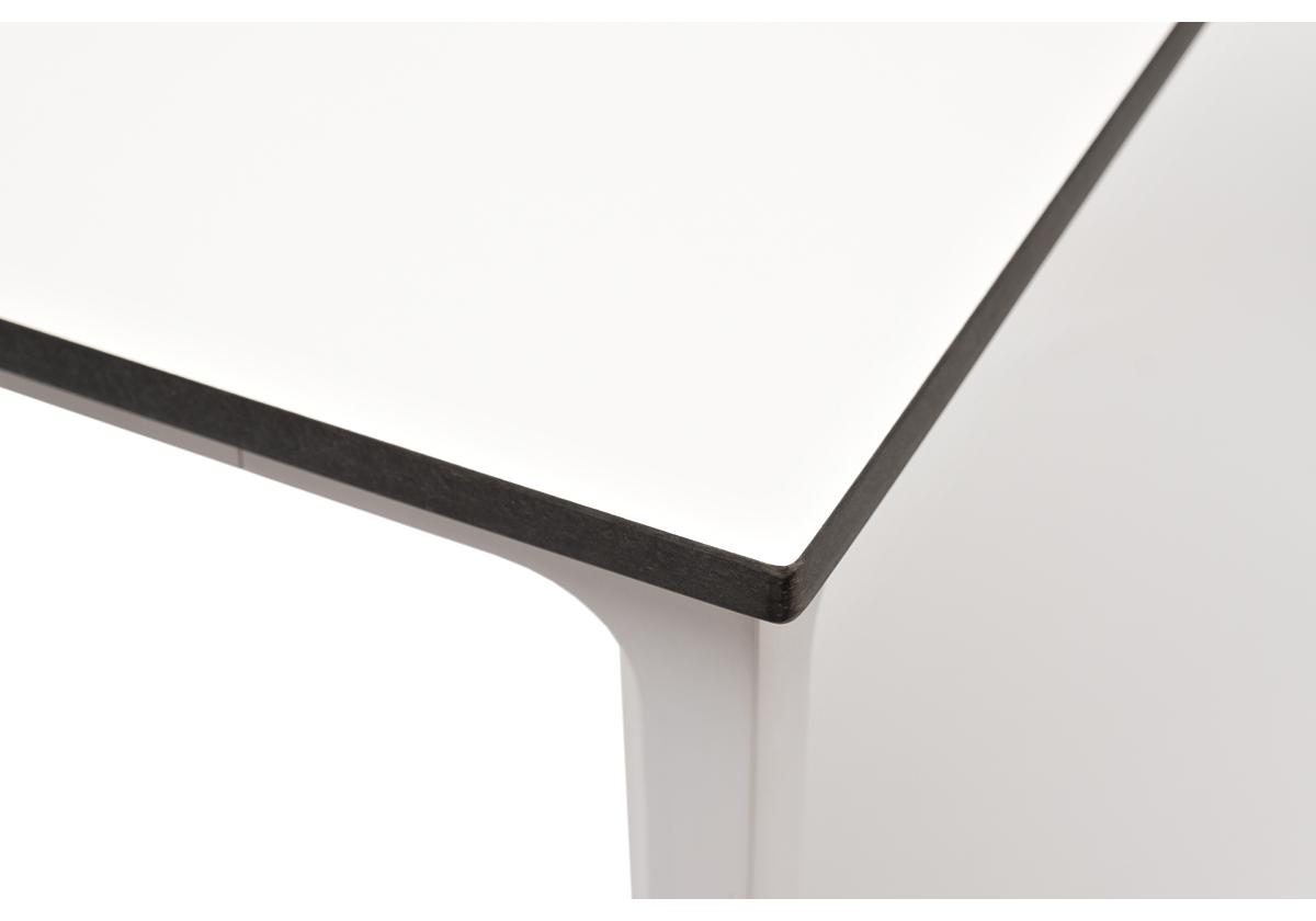 Столешница выполнена из современного высококачественного монолитного компакт-пластик HPL, толщиной 12 мм в молочном цветом. Материал устойчив к высоким температурам, попаданию влаги и может использоваться при любых погодных условиях. Подстолье изготовлено из крашеного алюминия белого цвета.