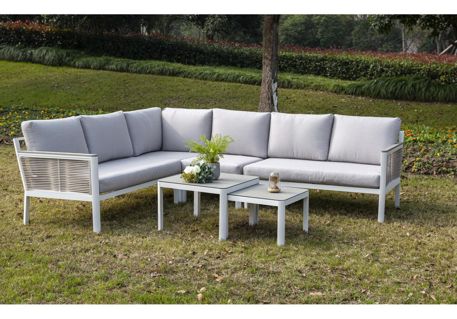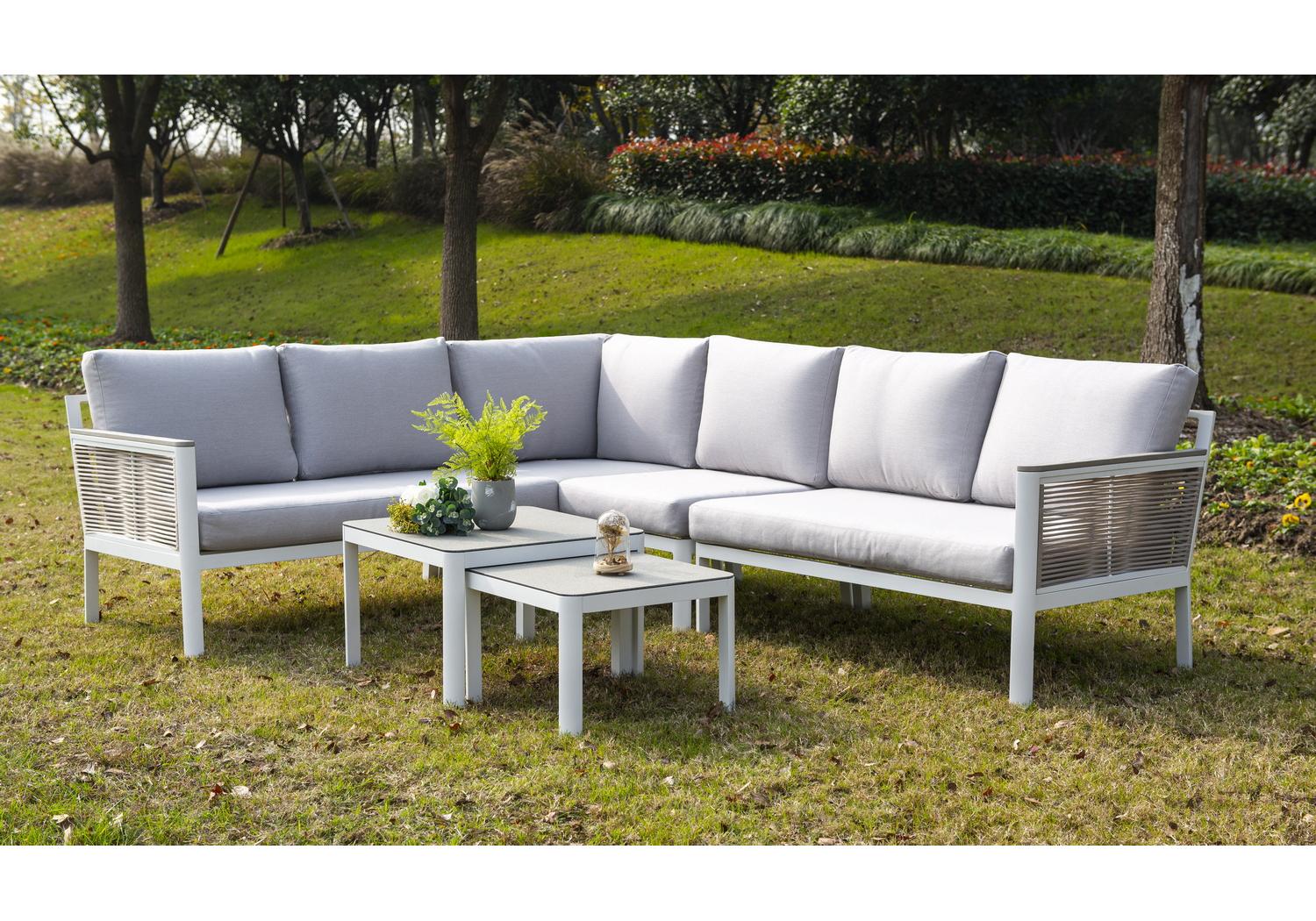 В основе находится устойчивый алюминиевый каркас, характеризующийся высокой износостойкостью. Столик гармонично дополняет зону отдыха, обустроенную уличной мебелью из этой серии. Представлен в белом цвете.
