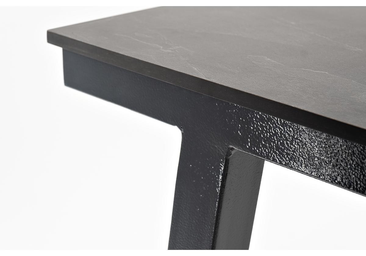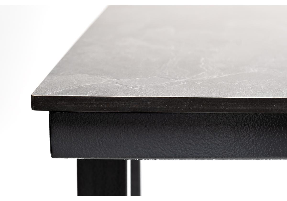 Размер стола - 1400×700×1100 мм. Столешница изготовлена из компакт-пластика HPL c рисунком цвета «серый гранит».