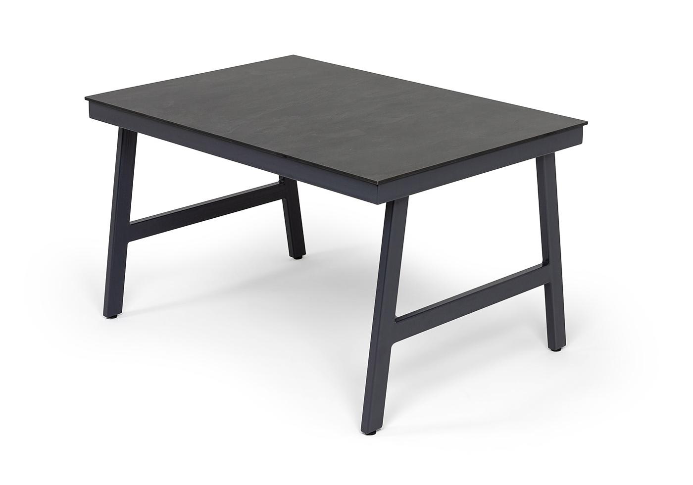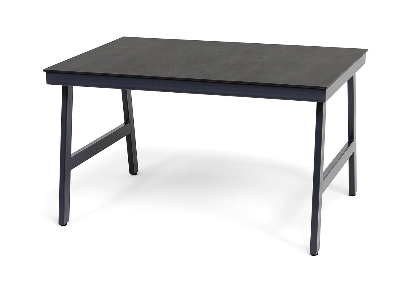 Размер стола - 1300×900×750 мм. Столешница изготовлена из компакт-пластика HPL c рисунком цвета «серый гранит».