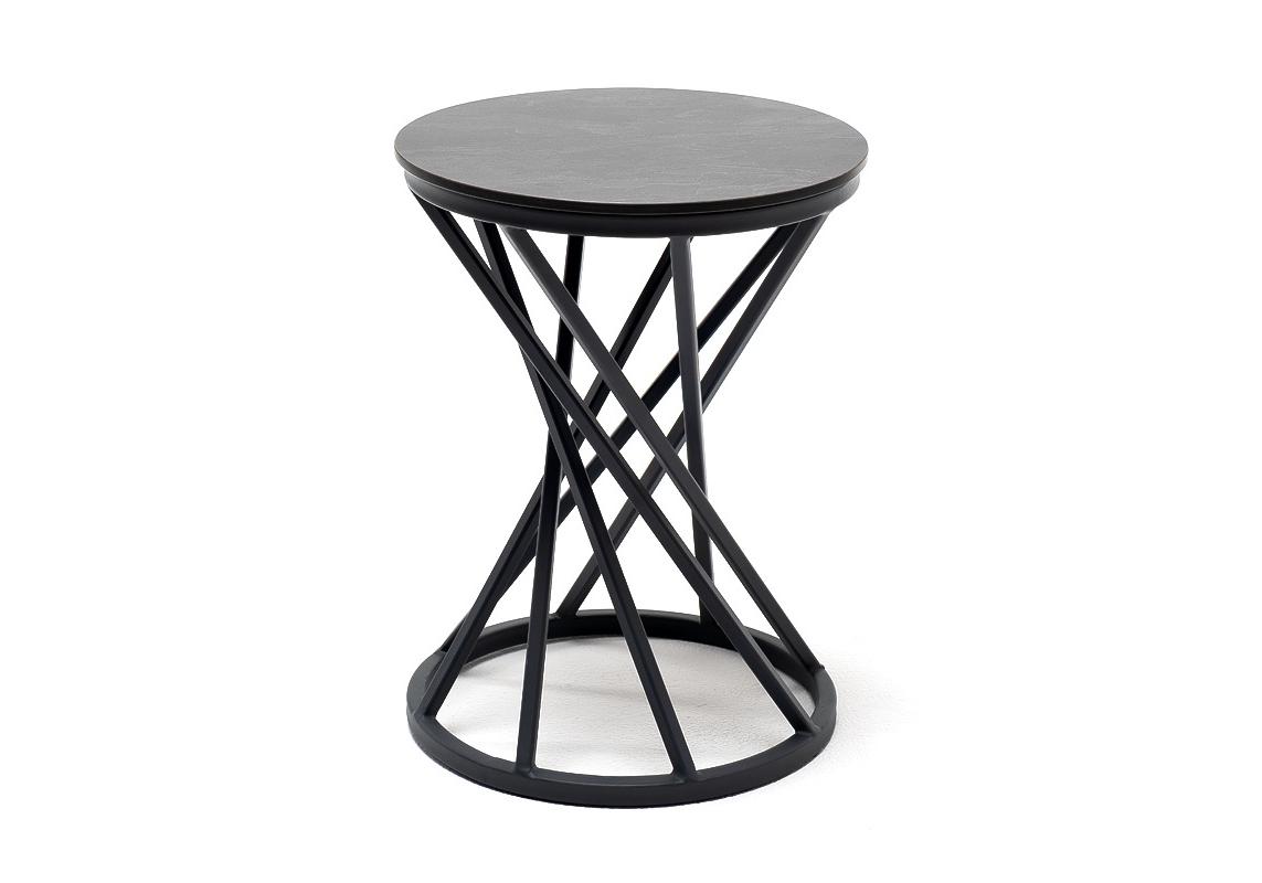 "Сантьяго" журнальный стол из HPL круглый Ø40 H55, каркас из стали темно-серый (RAL 7024), цвет столешницы "серый гранит"