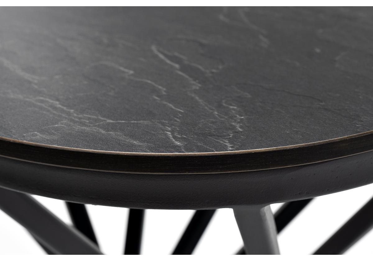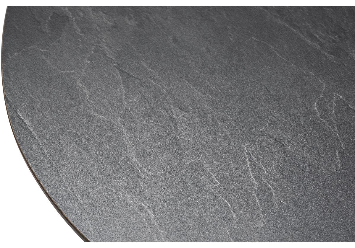 Круглый журнальный столик «Сантьяго» каркас изготовлен из стали, окрашенного в темно-серый цвет. Столешница выполнена из высококачественного монолитного компакт-пластика HPL, толщиной 12 мм. Цвет столешницы - «серый гранит».