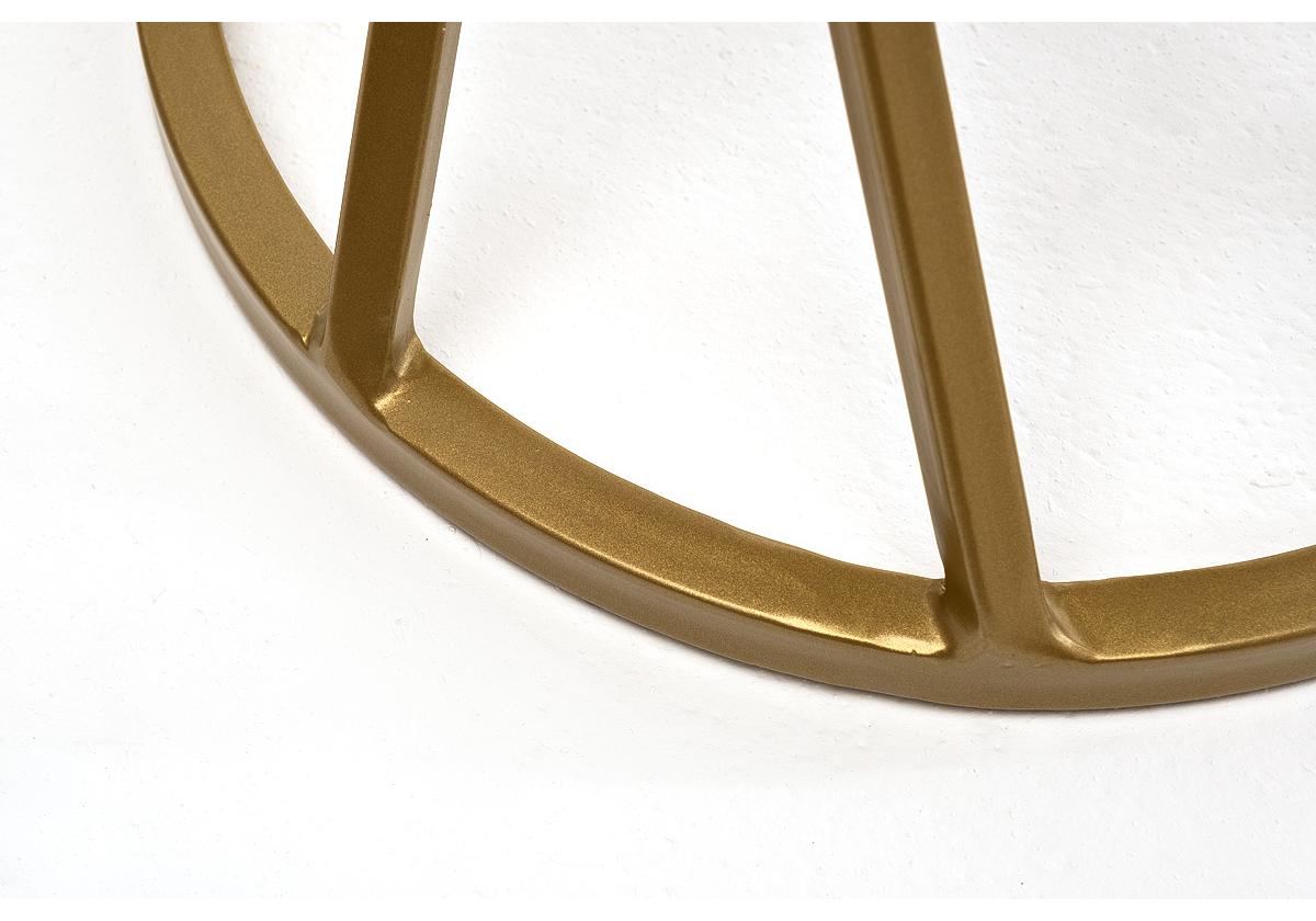 Круглый журнальный столик «Сантьяго» каркас изготовлен из стали, окрашенного в золотой цвет. Столешница выполнена из высококачественного монолитного компакт-пластика HPL, толщиной 12 мм. Цвет столешницы - "серый гранит".