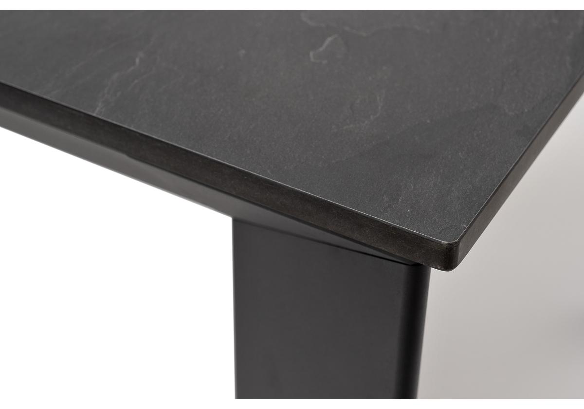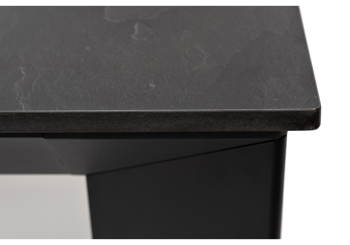 Столешница выполнена из современного высококачественного монолитного компакт-пластик HPL, толщиной 12 мм в цвете «серый гранит». Материал устойчив к высоким температурам, попаданию влаги и может использоваться как в помещении, так и на открытом пространстве. Подстолье изготовлено из крашеного алюминия черного цвета.