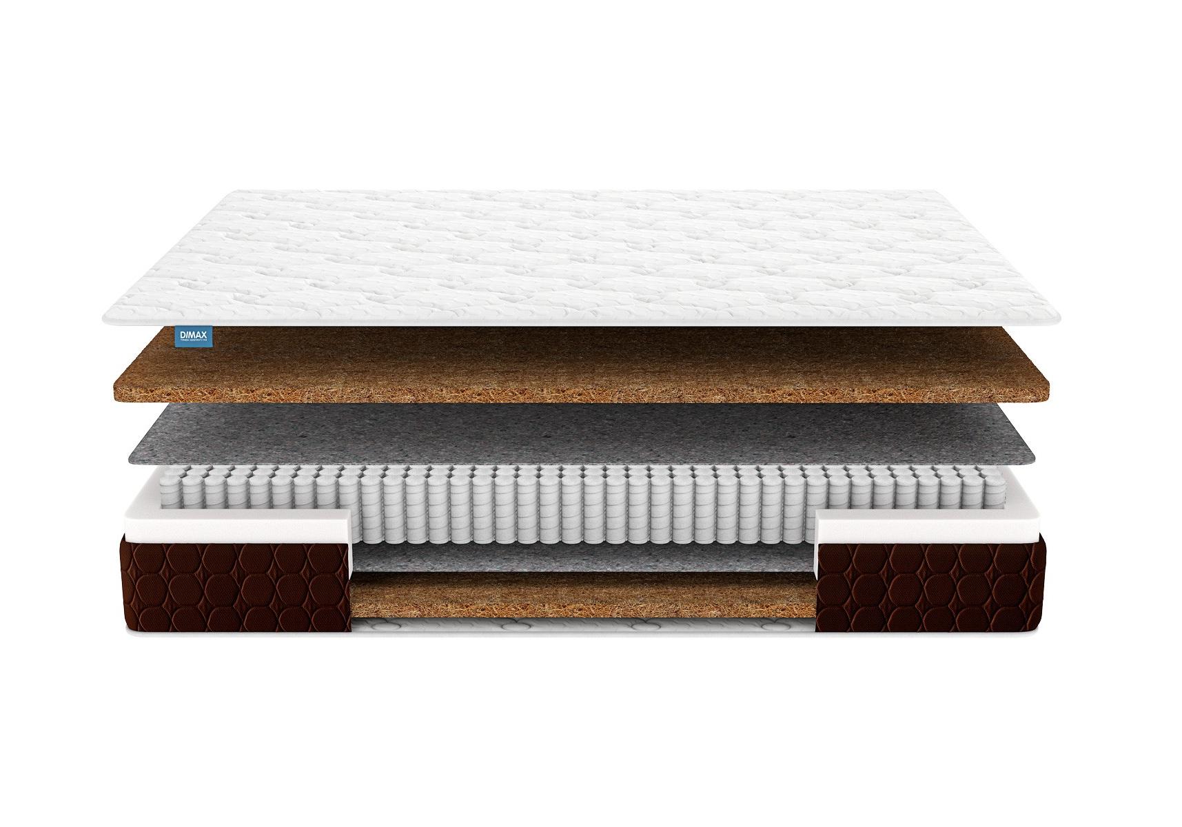 - Мощные слои из кокосовой койры — максимальная жесткость и вентиляция для профилактики провисаний и сохранения анатомически правильного положения спины.