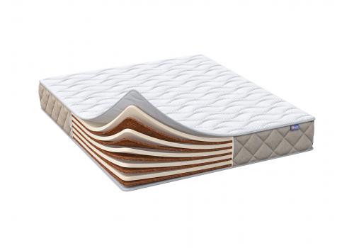 - 10-слойный беспружинный состав — 5 пластов искусственного латекса для адаптивного обволакивания и 5 слоёв кокосовой койры для правильной поддержки спины и общей прочности матраса.