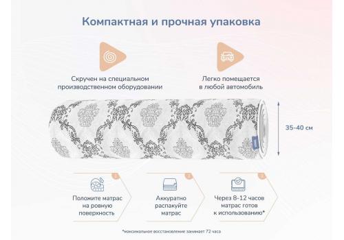 - Компактная доставка: Скрученная упаковка позволяет перевезти матрас в любом транспорте и быстро начать использование после распаковки.