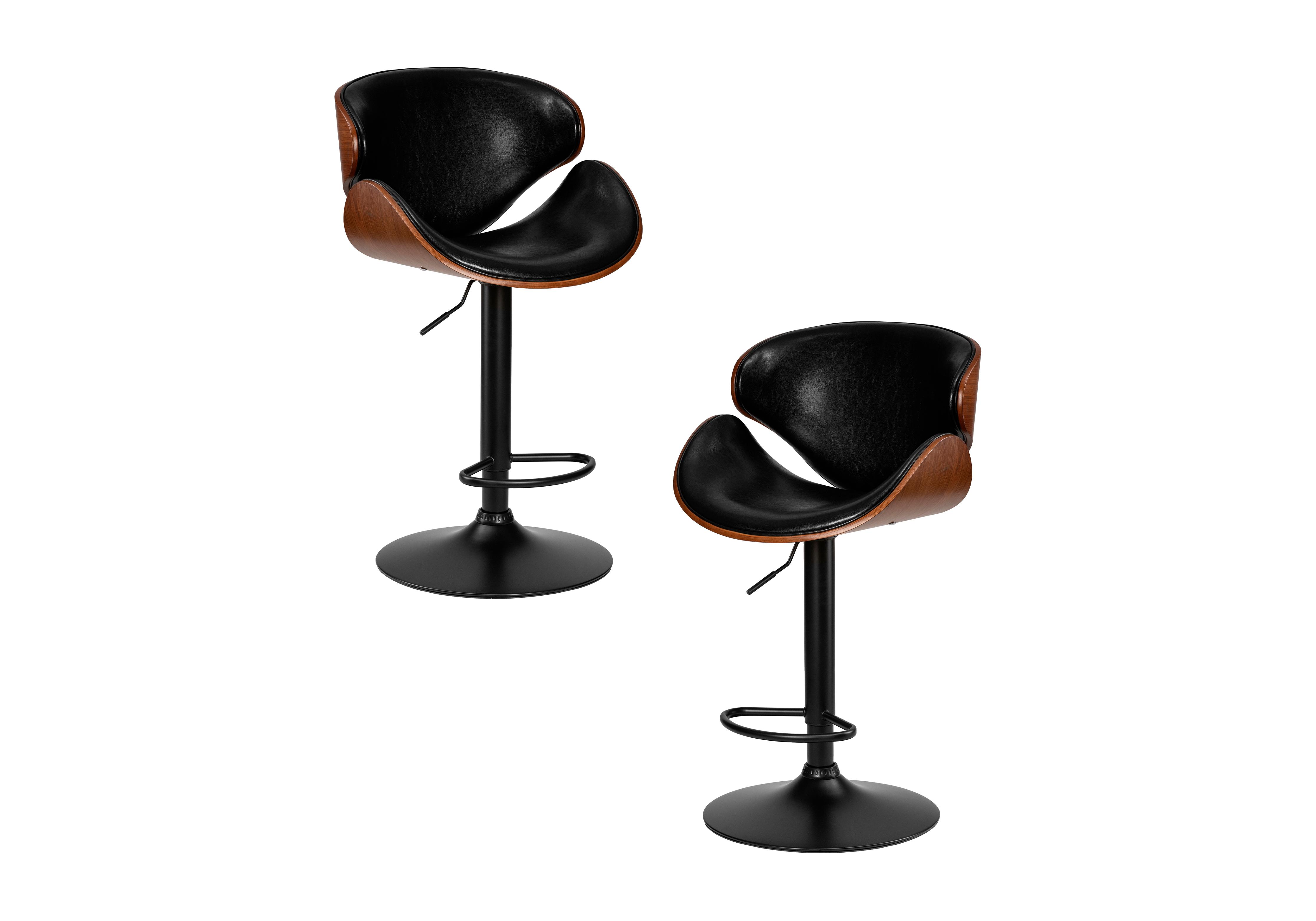 Набор 2 шт Стул барный DOBRIN KARTER BLACK, коричневый орех дерево (BWW), черный PU