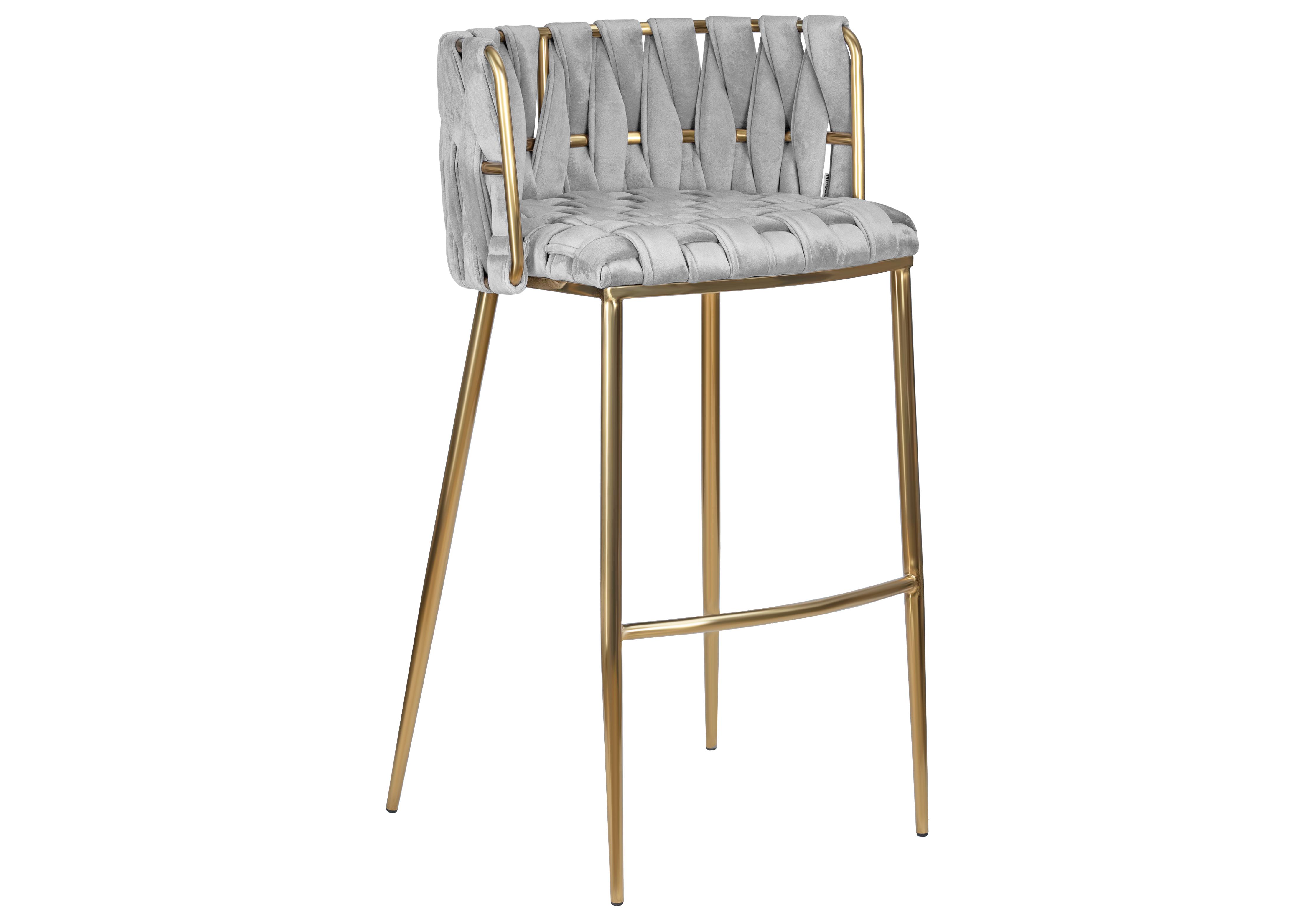 Стул барный DOBRIN EMMA GOLD, светло-серый велюр (135-37)