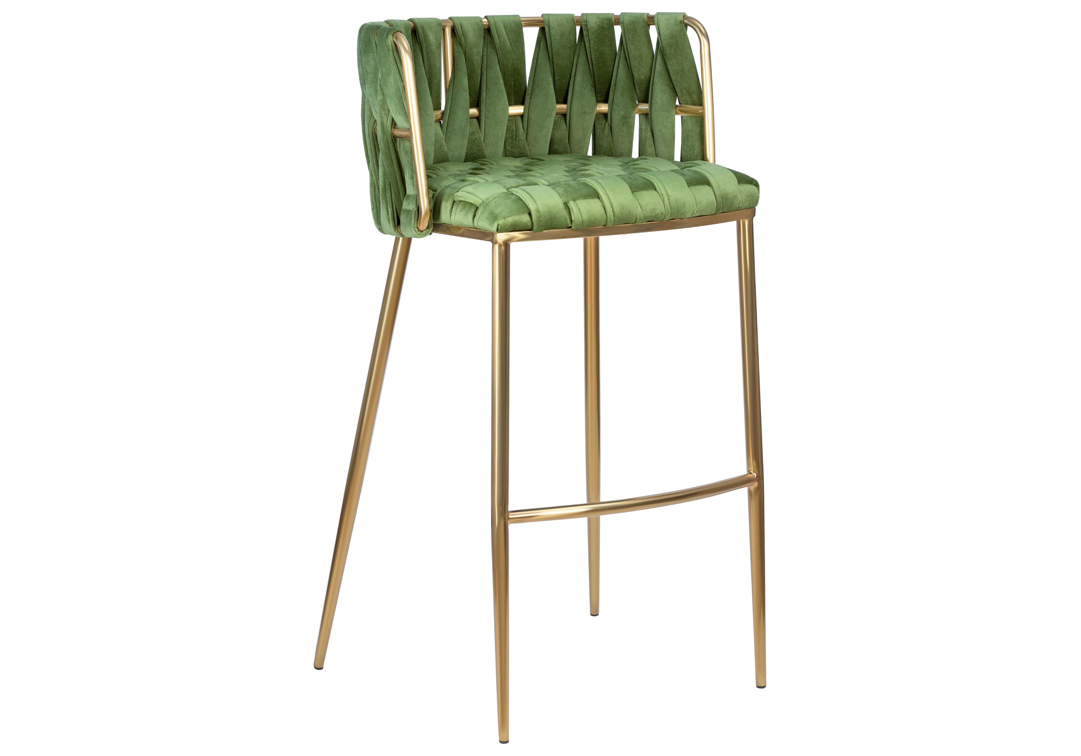 Стул барный DOBRIN EMMA GOLD, зеленый велюр (VF-08)