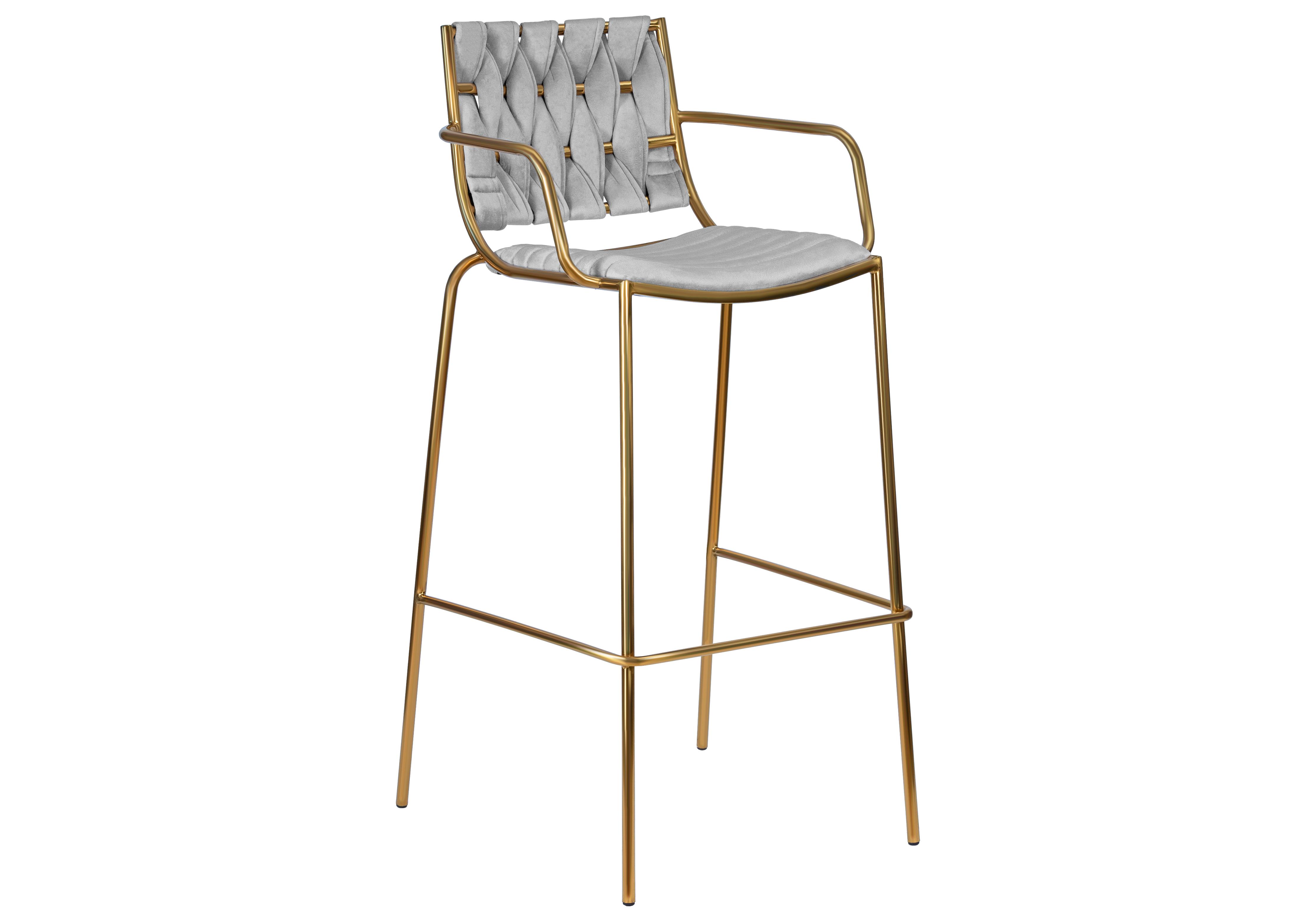 Стул барный DOBRIN MILLER GOLD, светло-серый велюр (135-37)