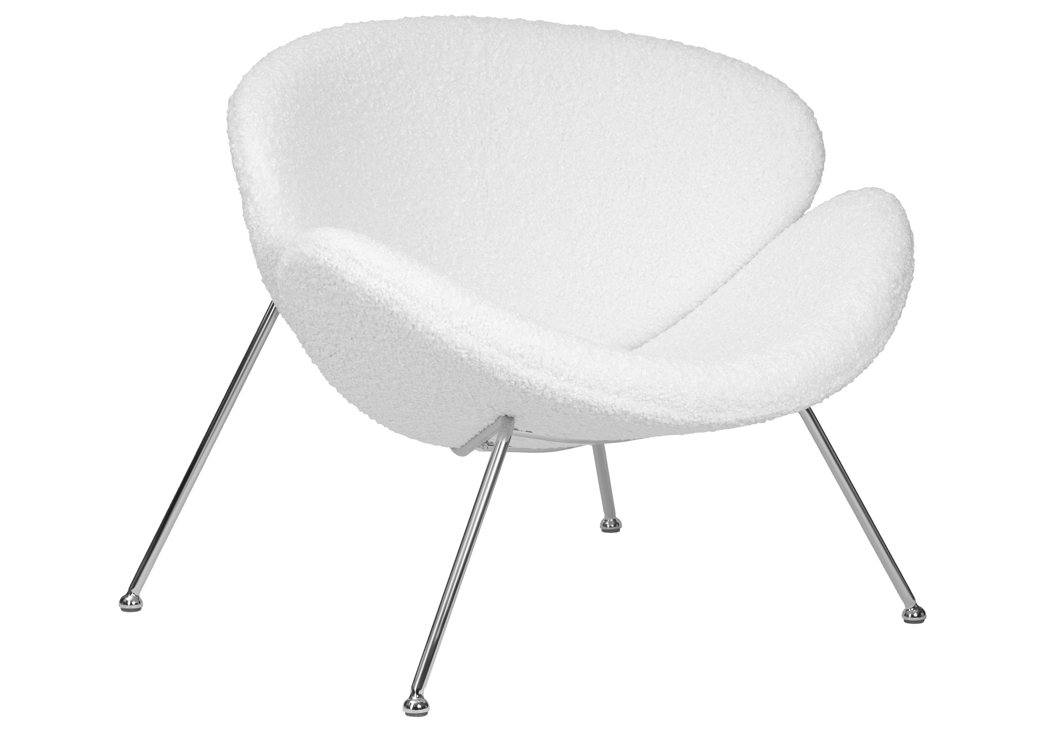 Кресло дизайнерское DOBRIN EMILY, белый (букле) ткань , хромированная сталь