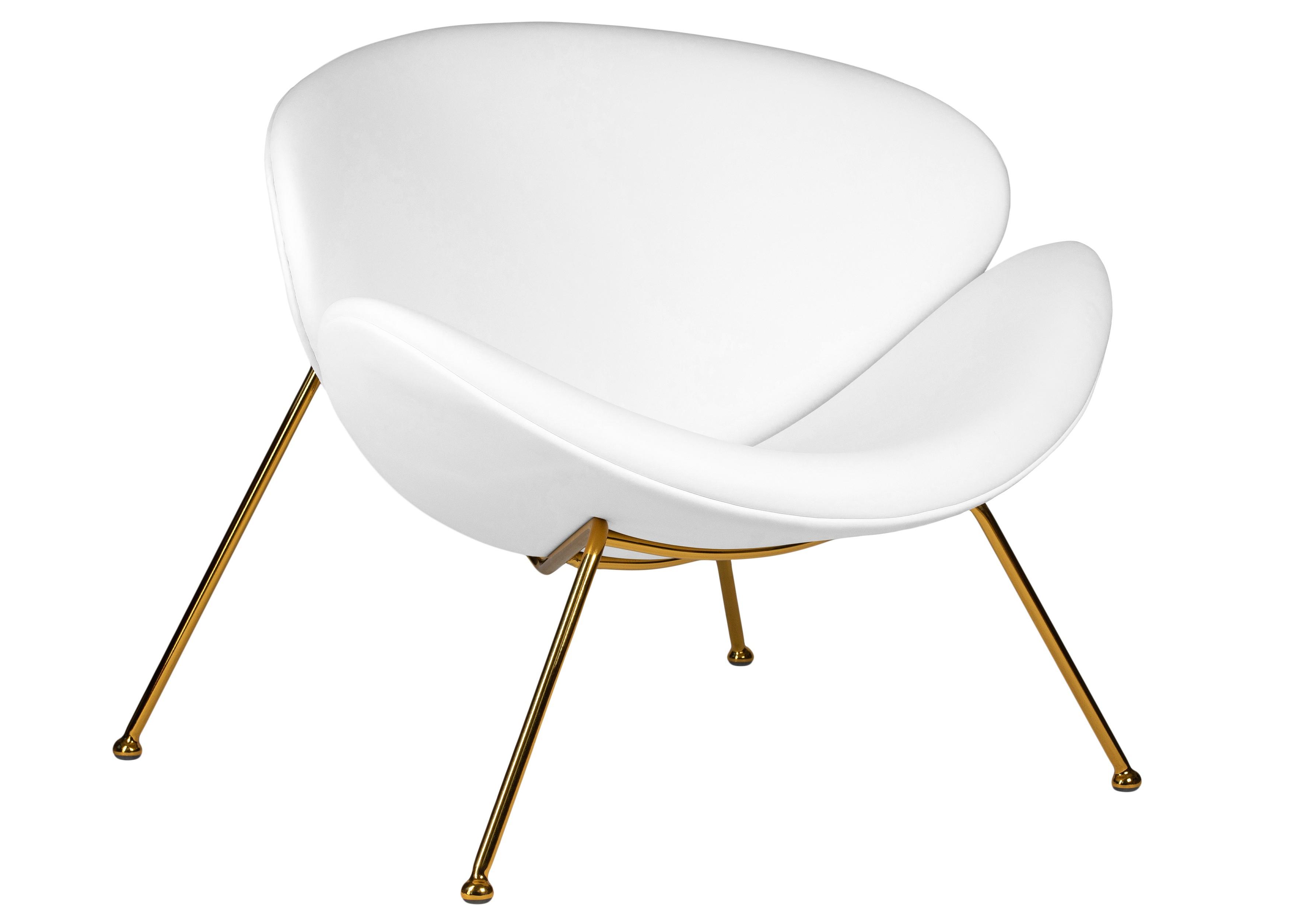Кресло дизайнерское DOBRIN EMILY, белый винил YP17, золотое основание