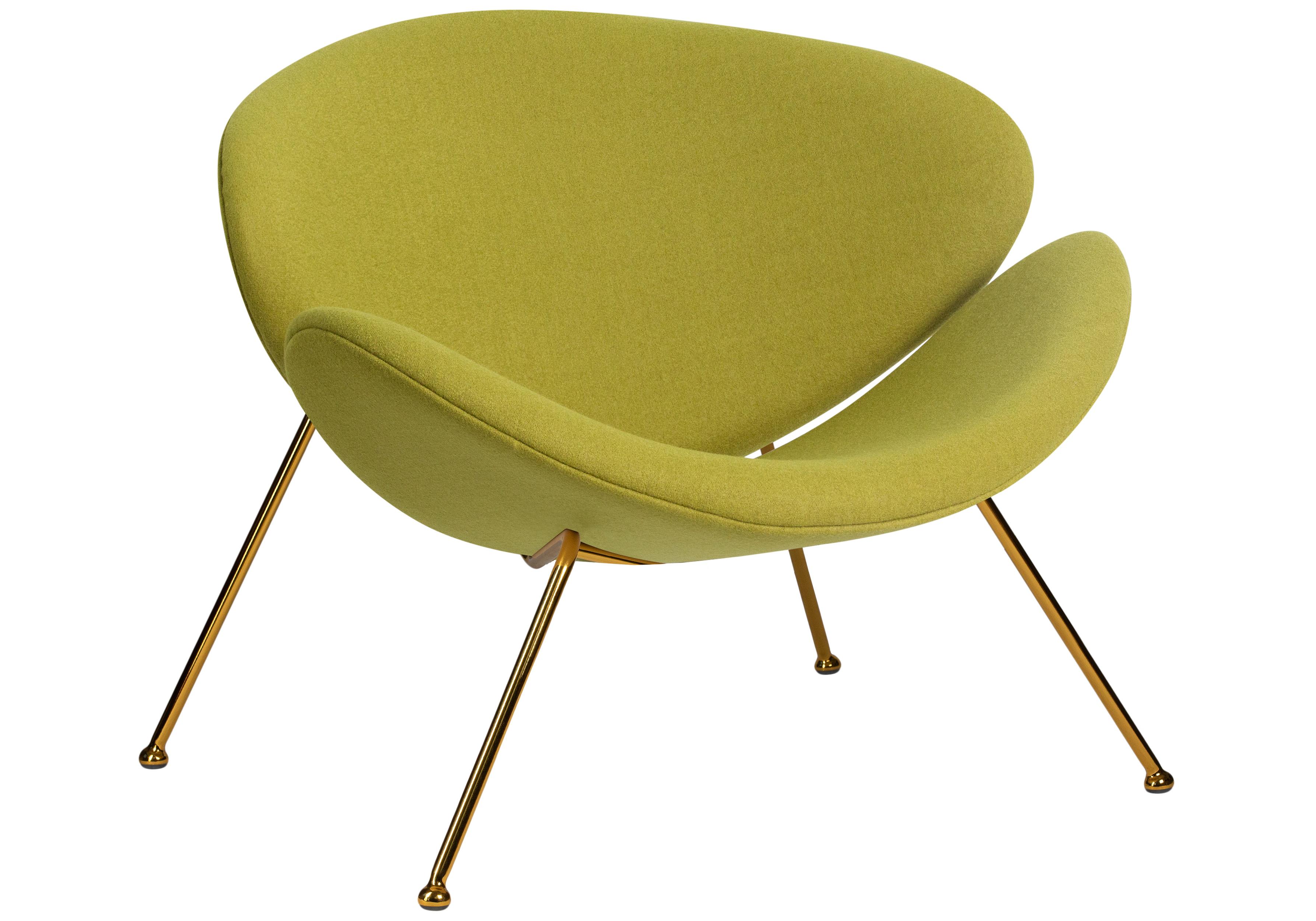 Кресло дизайнерское DOBRIN EMILY, светло-зеленая ткань AF3, золотое основание