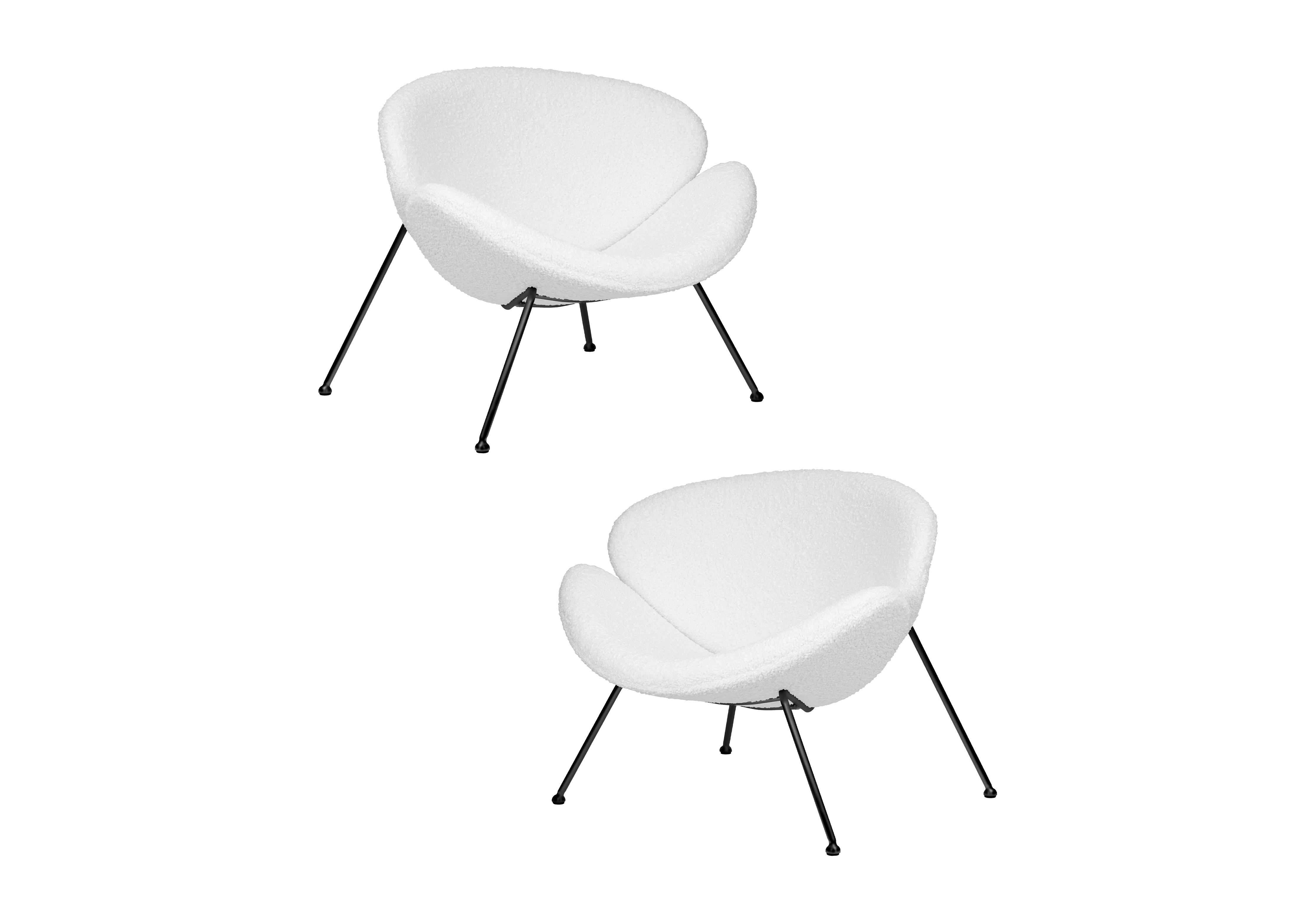 Набор 2 шт Кресло дизайнерское DOBRIN EMILY, белый (букле) ткань, черное основание