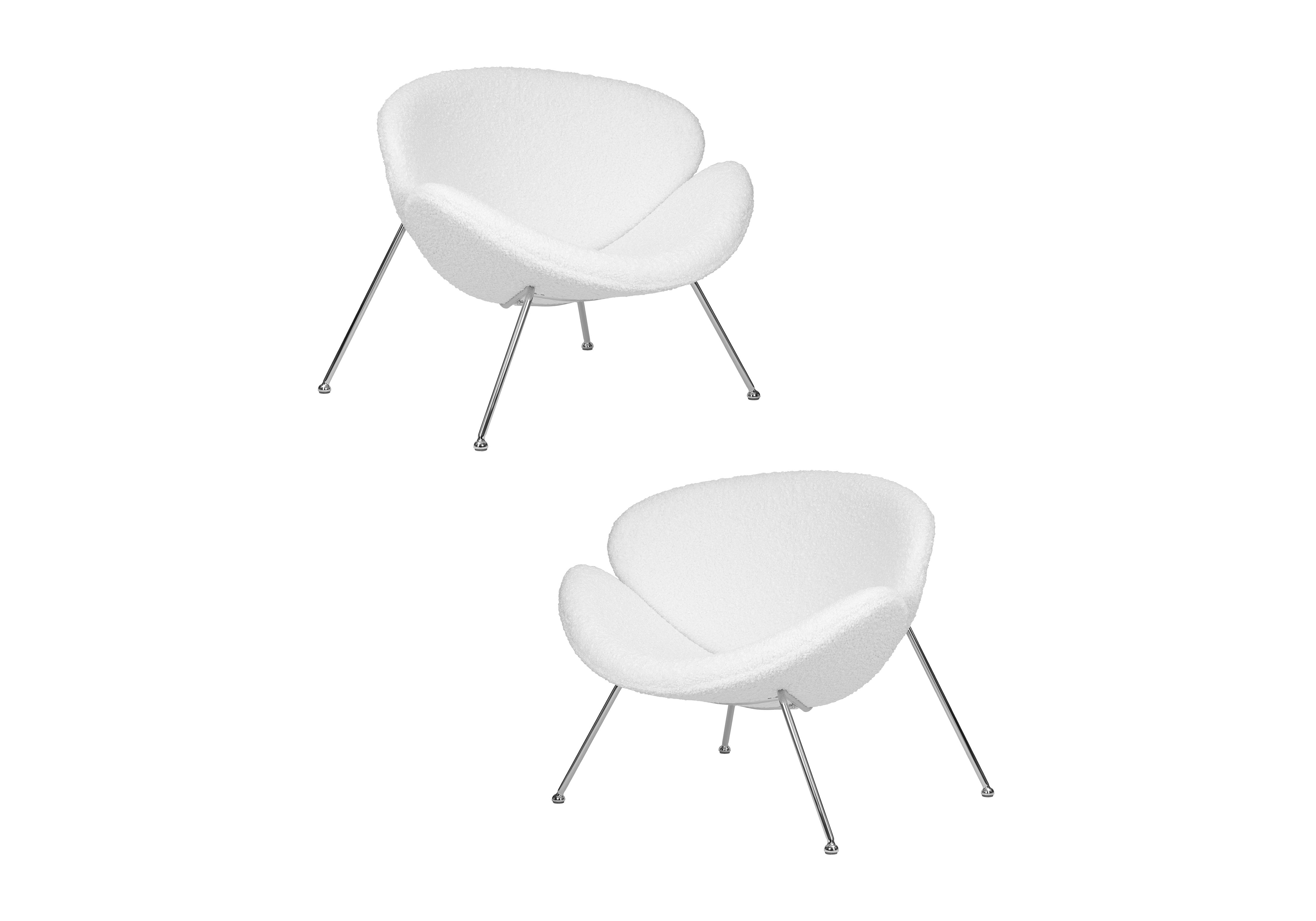 Набор 2 шт Кресло дизайнерское DOBRIN EMILY, белый (букле) ткань , хромированная сталь