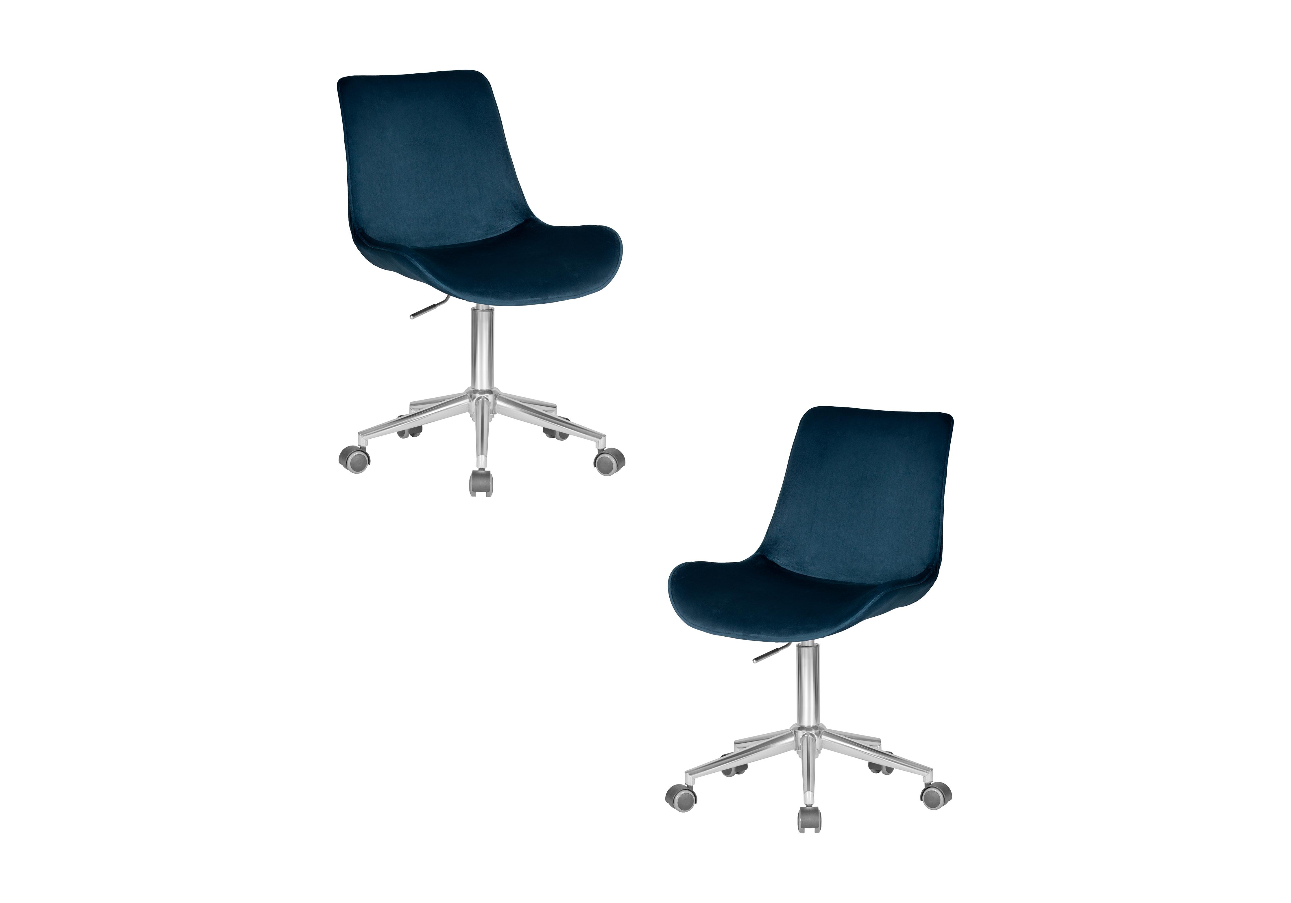 Набор 2 шт Кресло офисное DOBRIN DORA, синий велюр (1922-20), хромированная сталь