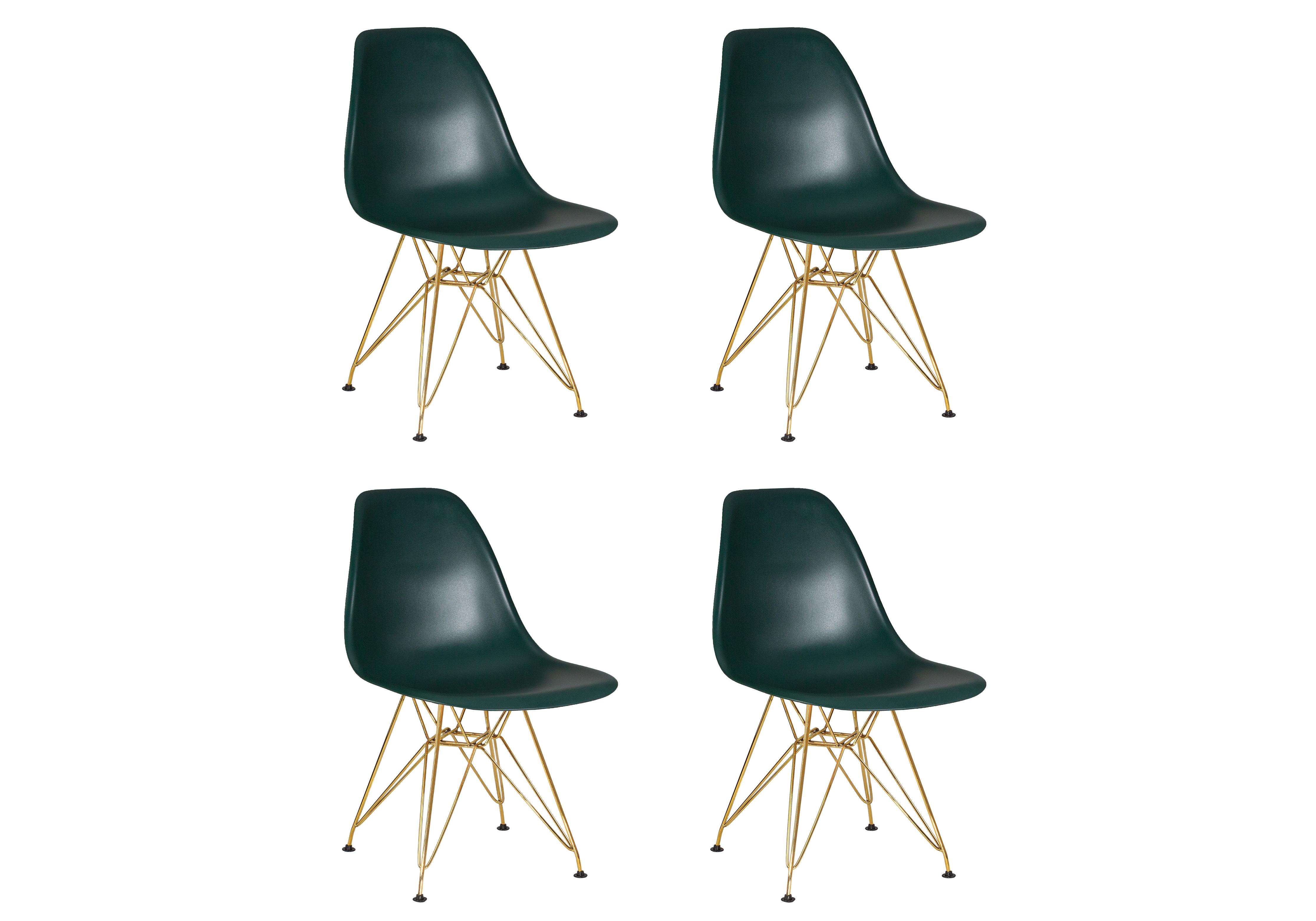 Набор 4 шт Стул обеденный DOBRIN DSR, ножки золотые, цвет тёмно-зеленый (G-13)