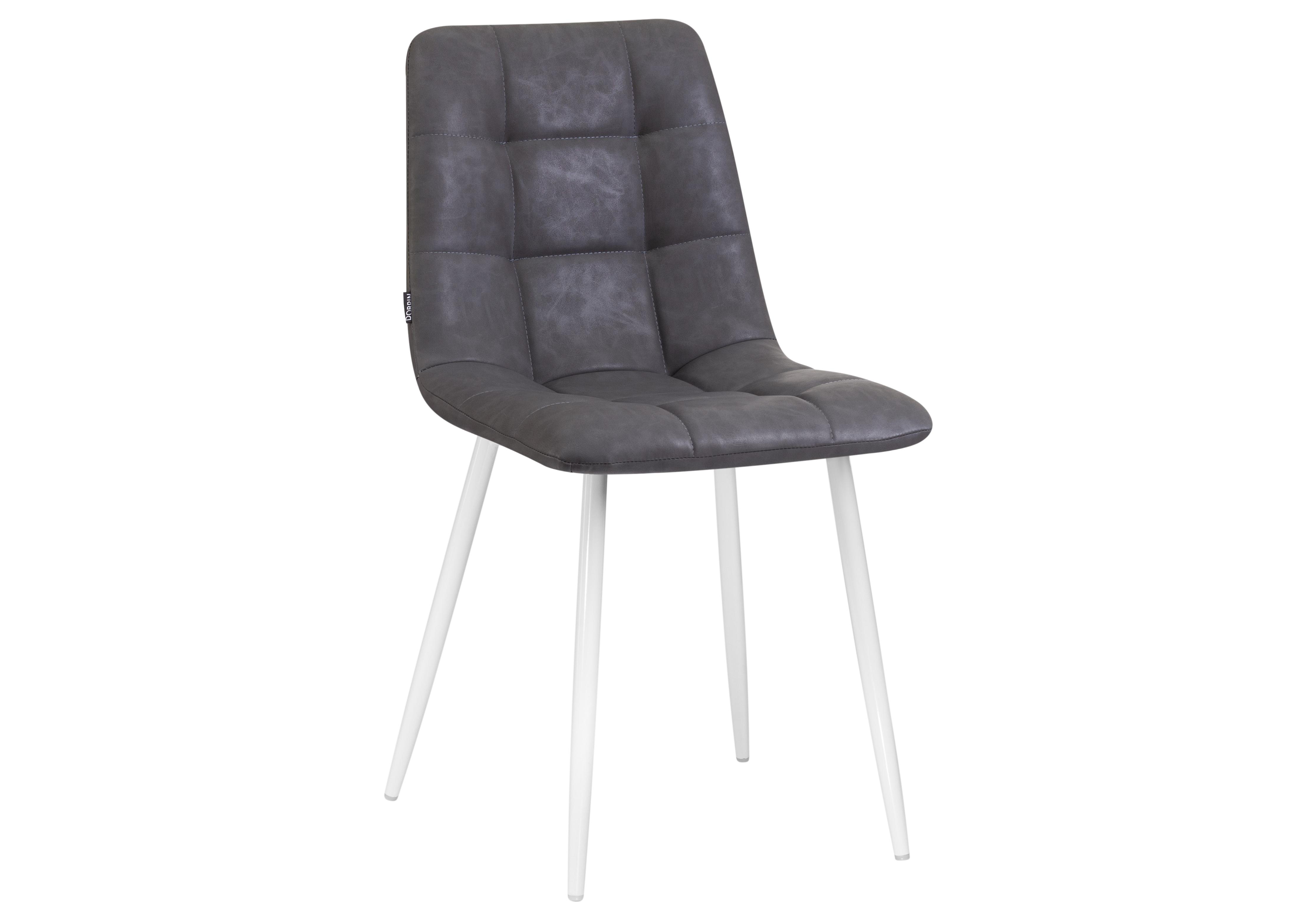Стул обеденный DOBRIN ALEX, белые ножки, серая антрацитовая винтажная экокожа (RU-08)