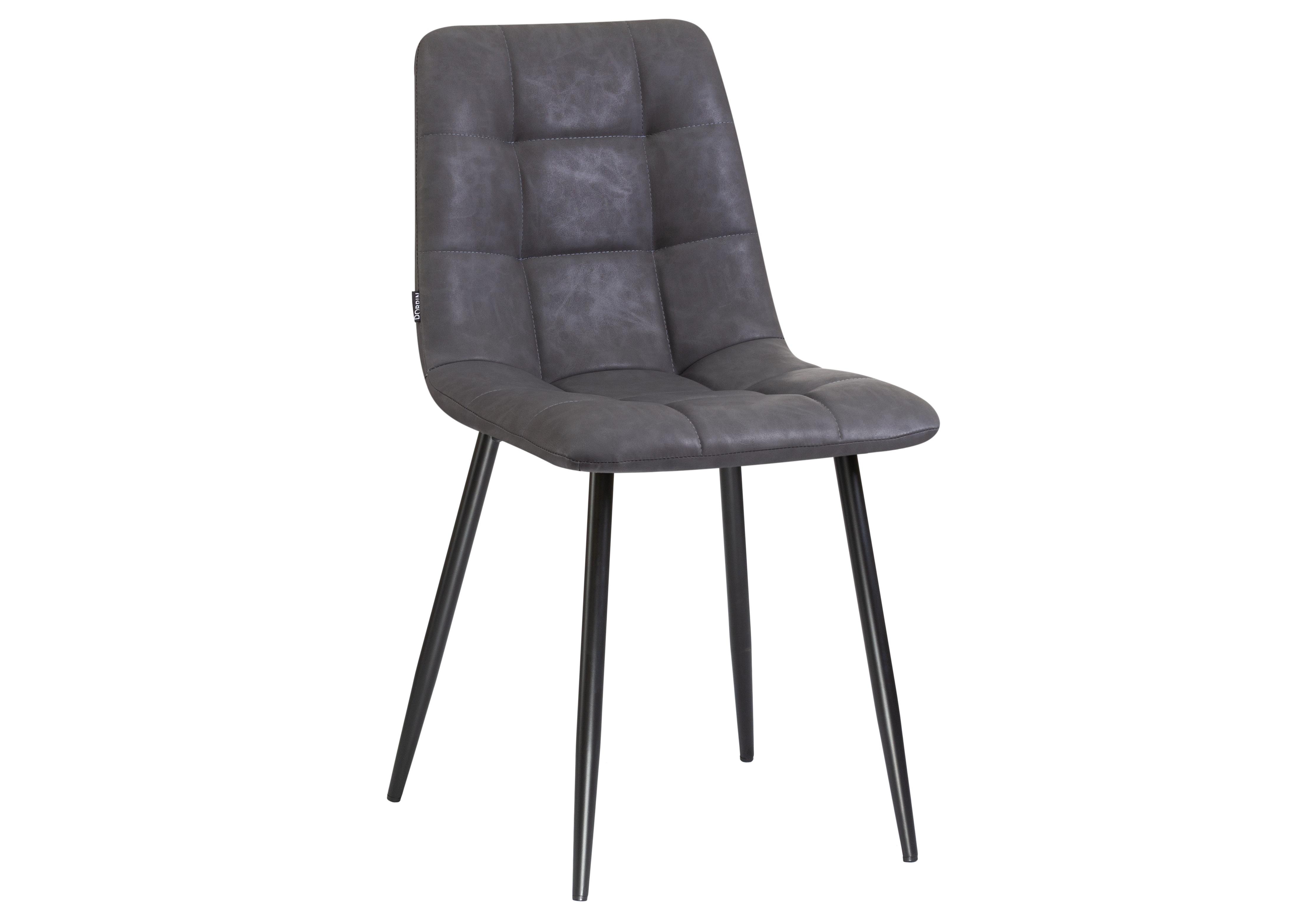 Стул обеденный DOBRIN ALEX, черные матовые ножки, серая антрацитовая винтажная экокожа (RU-08)