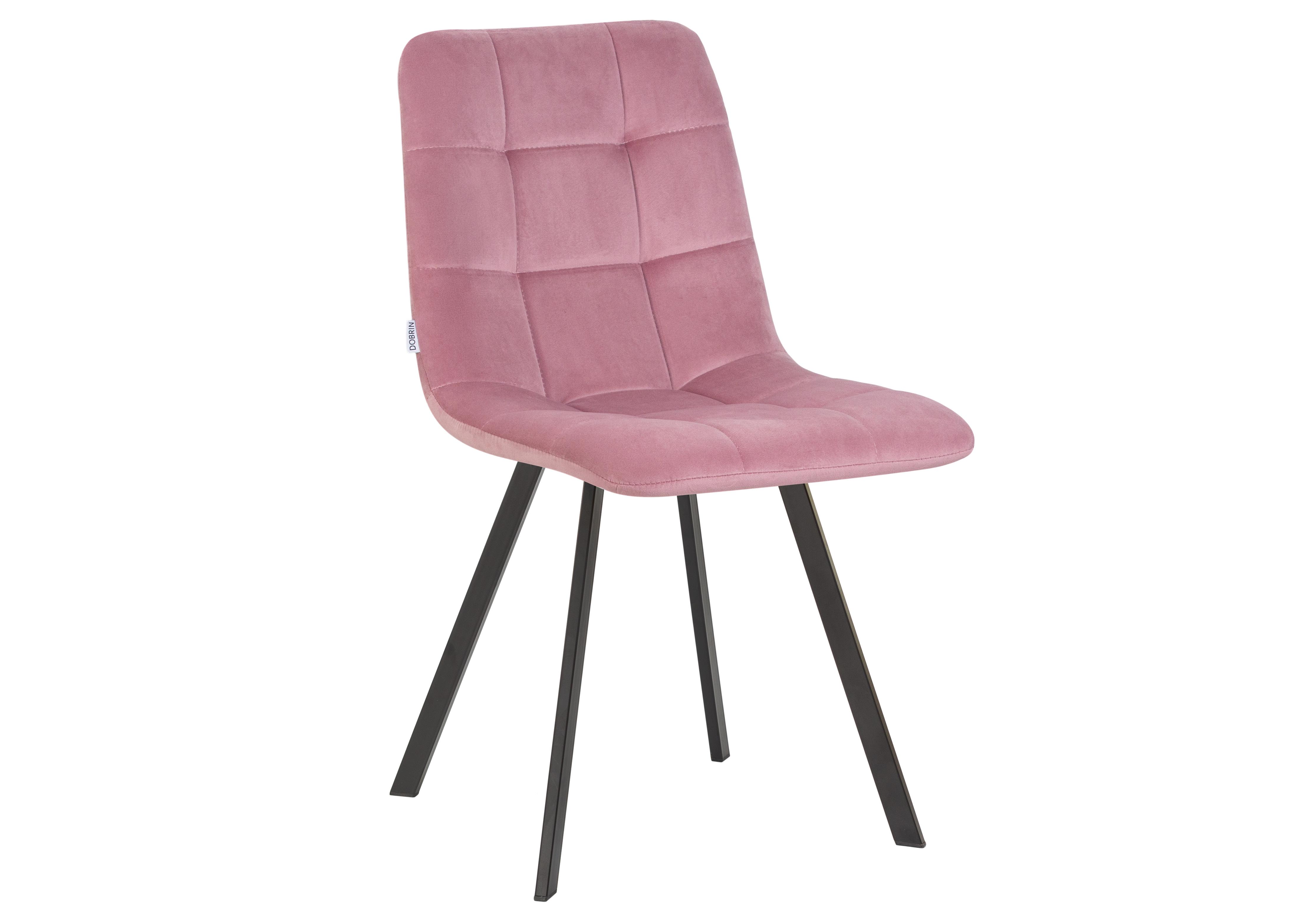 Стул обеденный DOBRIN ALEX SQUARE, черные матовые ножки, розовый велюр (V108-15)
