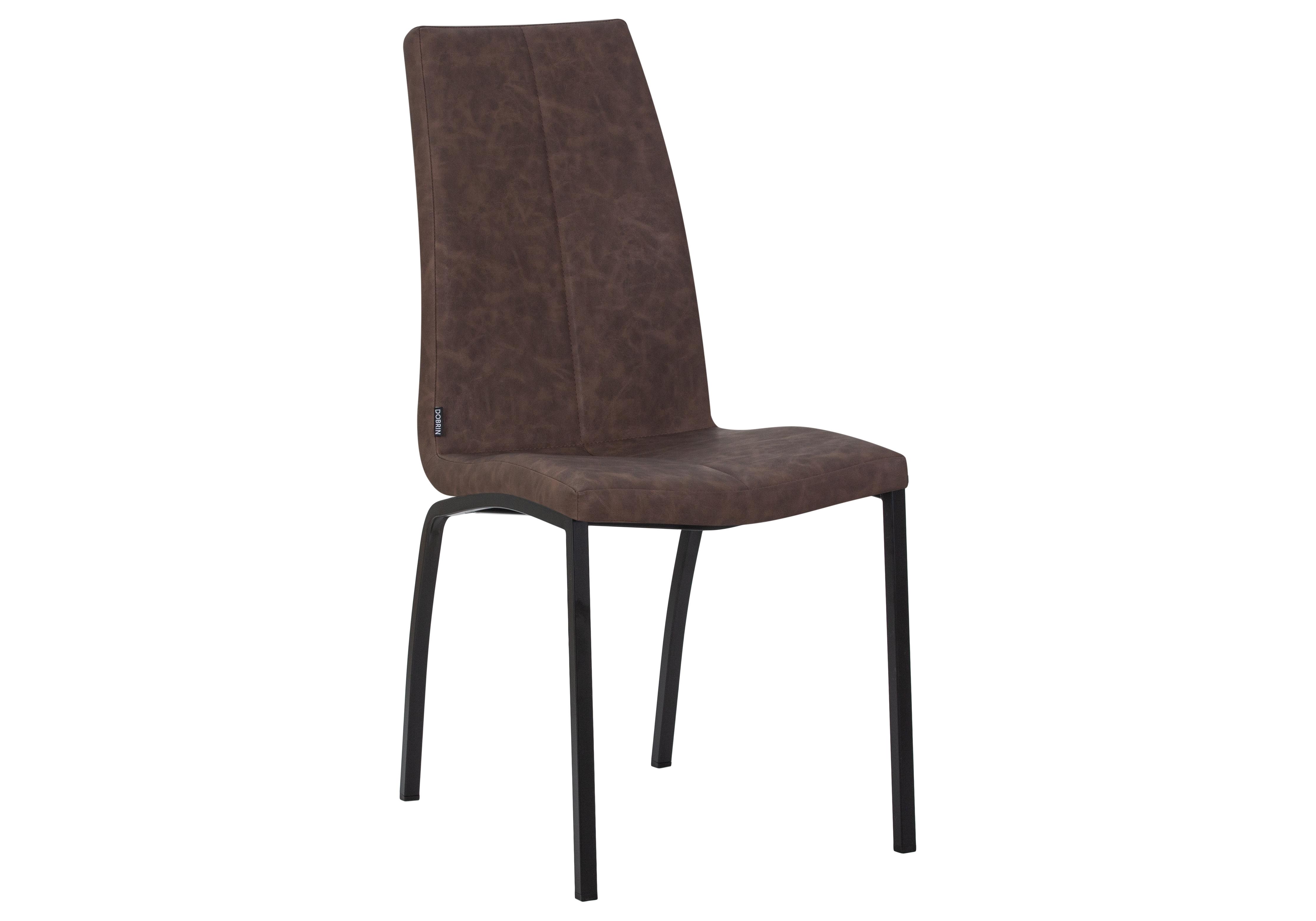 Стул обеденный DOBRIN MARK, черные ножки, коричневая винтажная экокожа (RU-05)