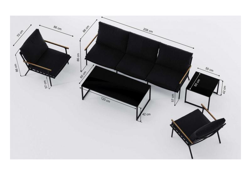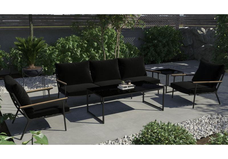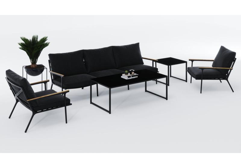 Цвет: каркас темно-серый карбон / подушки черные / столешница черная глянцевая