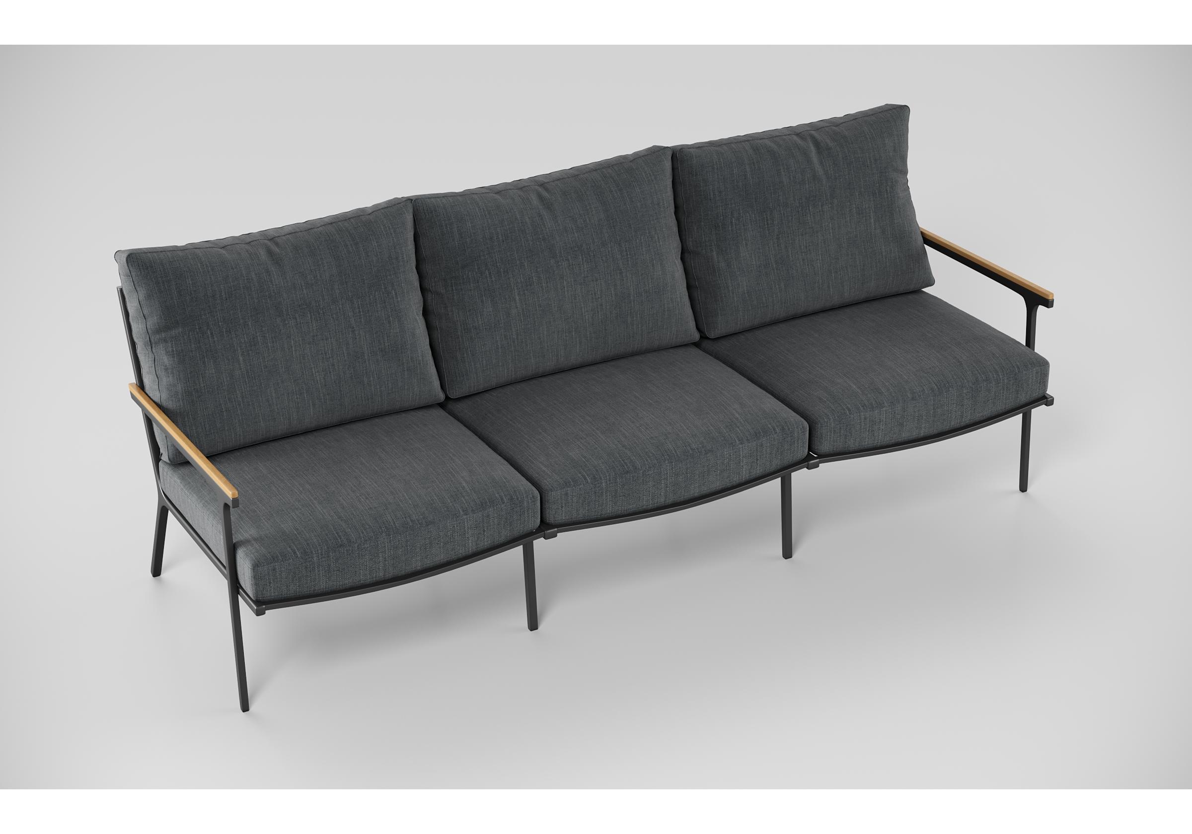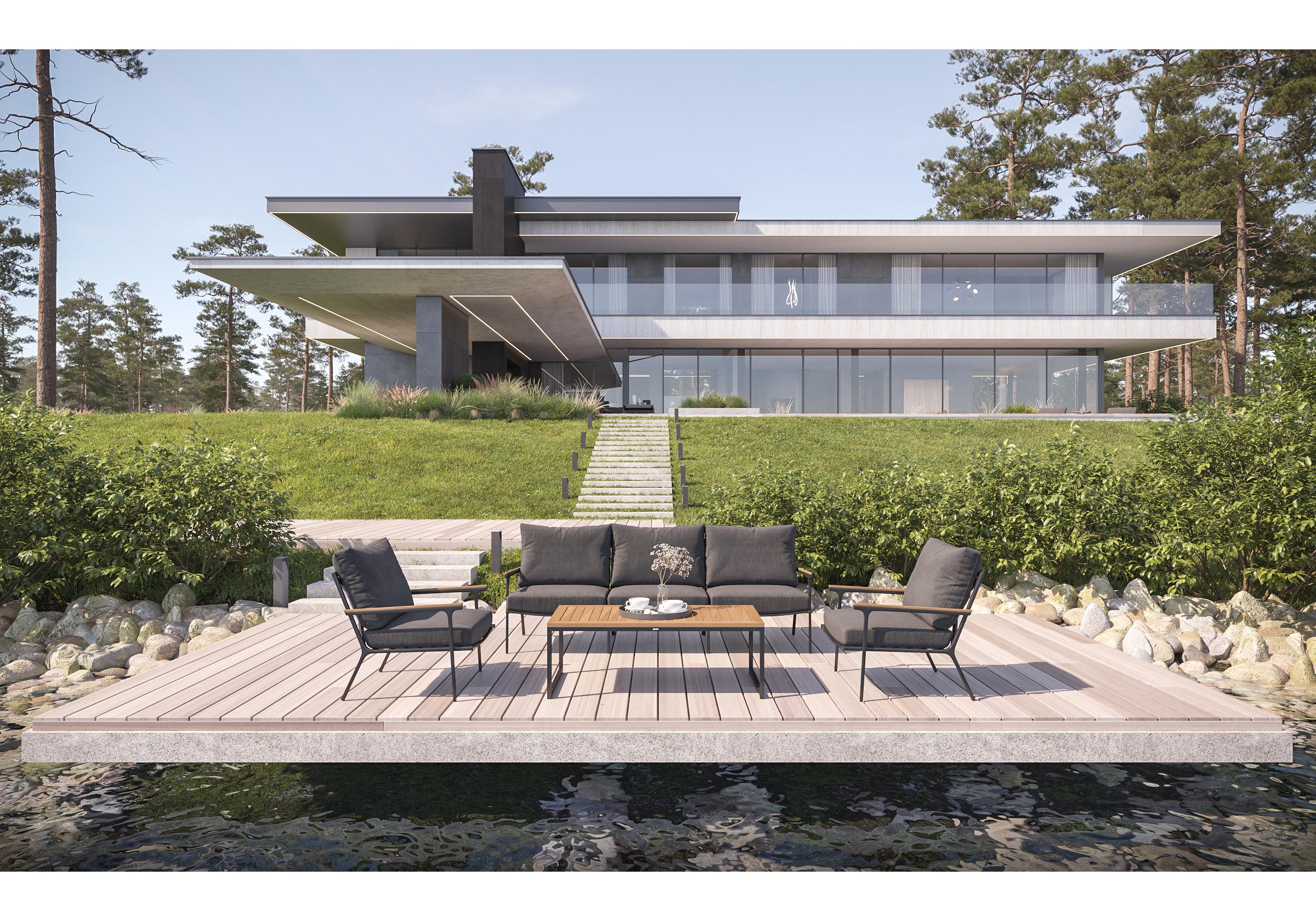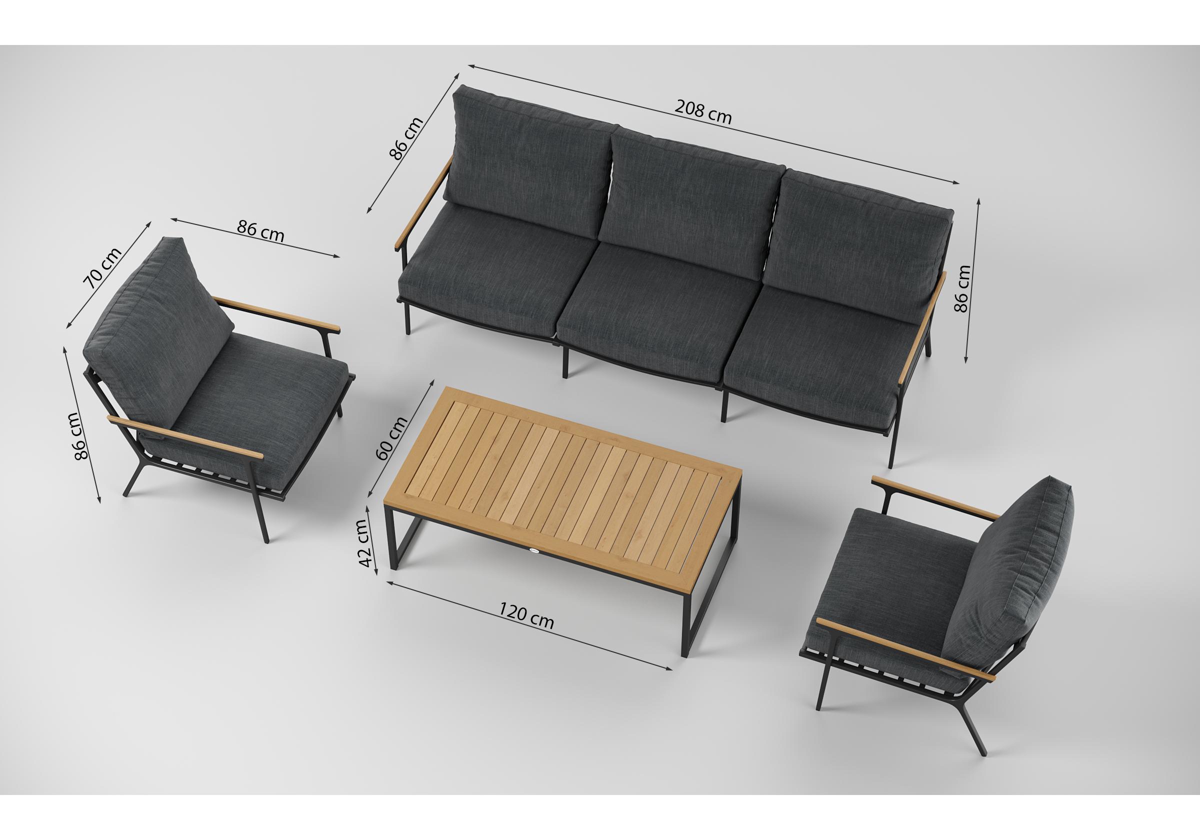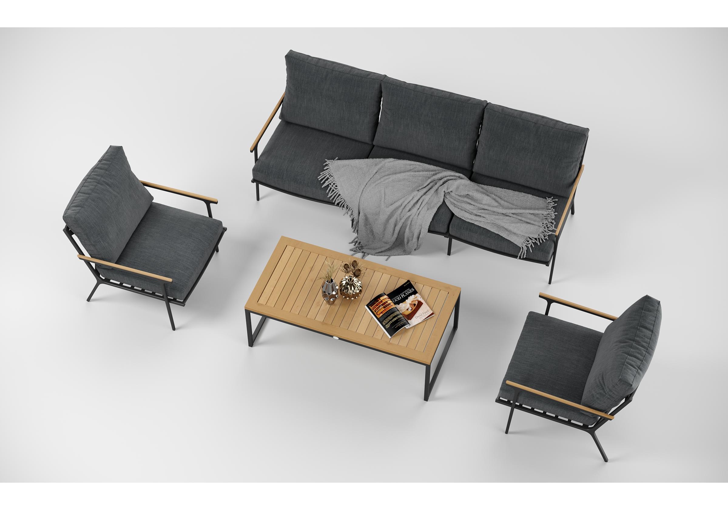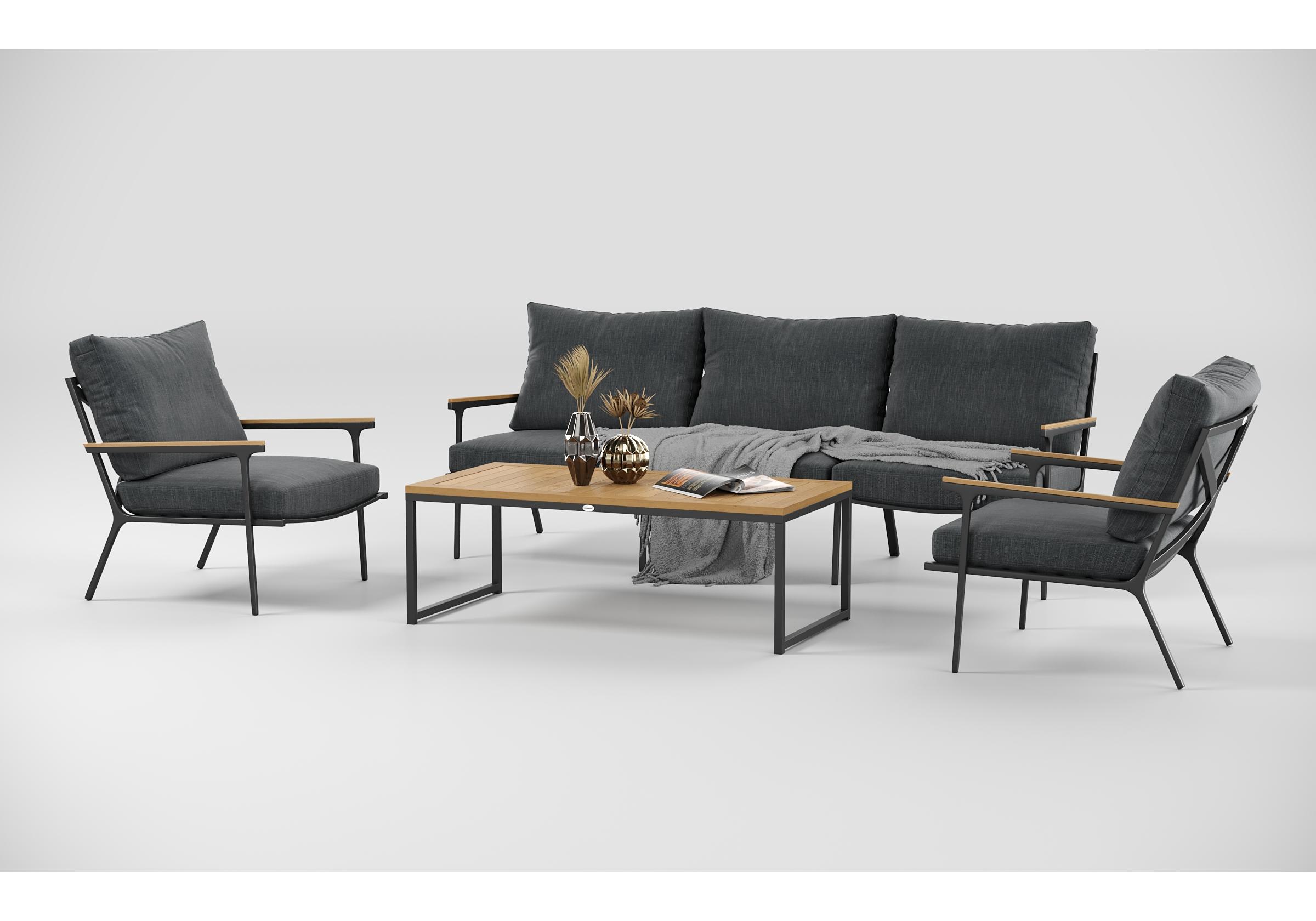 Особенности: подлокотники и планки столешницы из благородного тика, премиальная уличная ткань, съемные чехлы подушек на "молнии", дополнительно можно приобрести комплект защитных чехлов